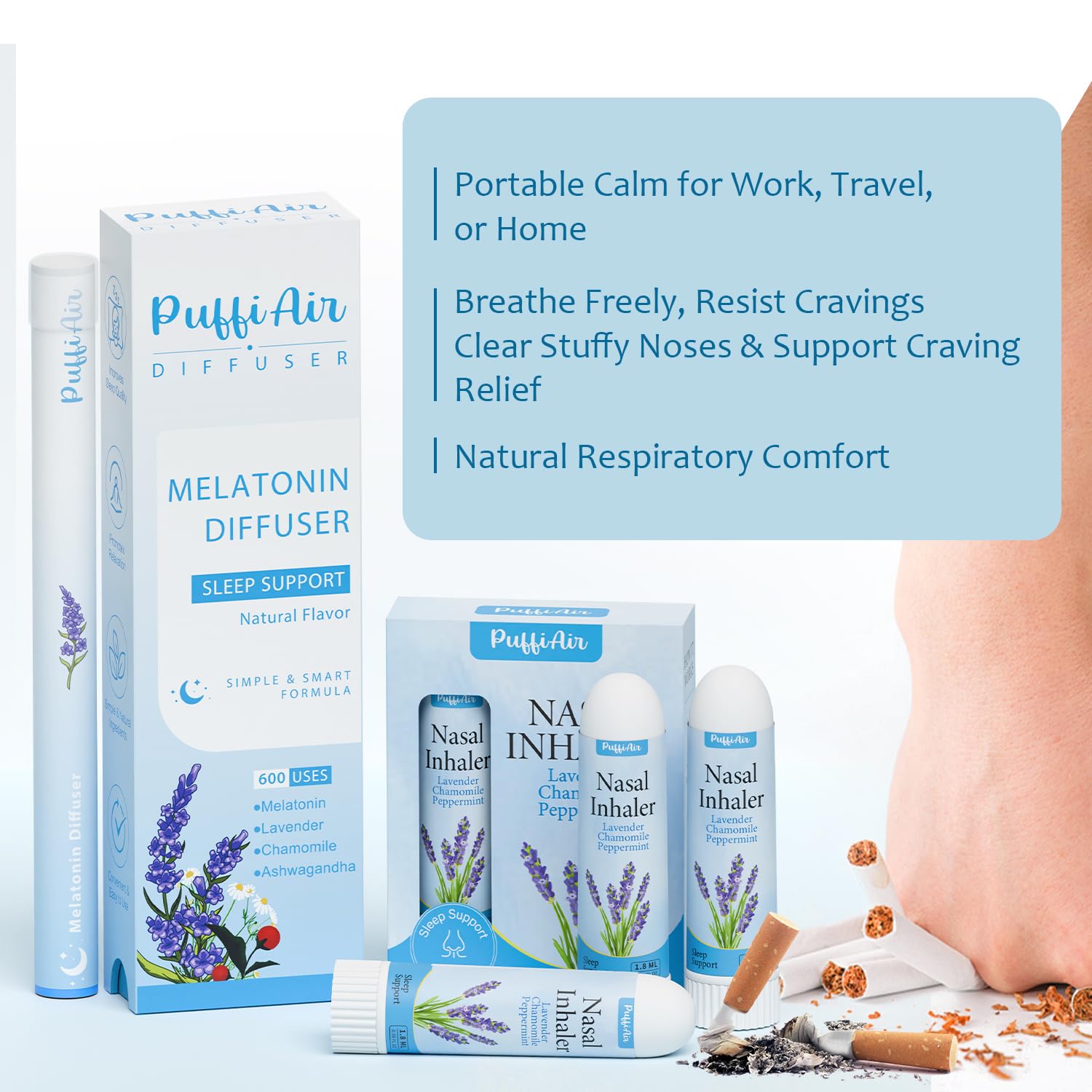 Targeted Relief for Daily Challenges – The diffuser rebalances stress hormones and improves sleep patterns over time; the nasal sticks distract from smoking cravings and foster tranquility—perfect for fast-paced lives or occasional sleeplessness