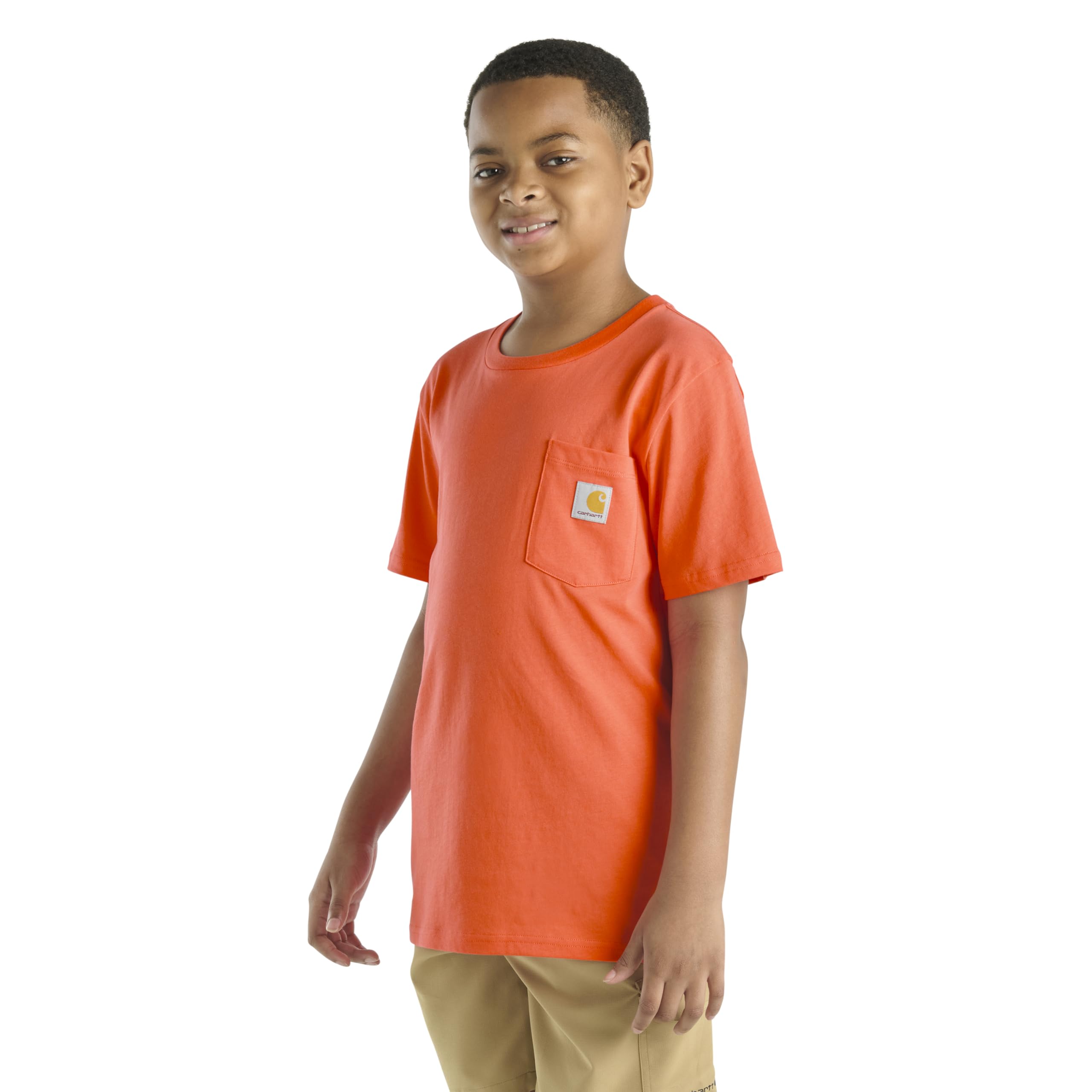 Description Fun-size Carhartt with full-size durability. This kids’ Re-Engineered Garment Dye Pocket T-Shirt is made from 5.3-ounce, 100% cotton jersey that feels soft from the start but stands up to whatever the day brings. Side-seam construction helps reduce twisting, keeping the fit comfortable and the shape consistent. A rib-knit crewneck slips on easily, and the classic left-chest pocket with a sewn-on Carhartt label completes the signature look. The perfect everyday tee for kids who play hard — built with the strength you expect from Carhartt.