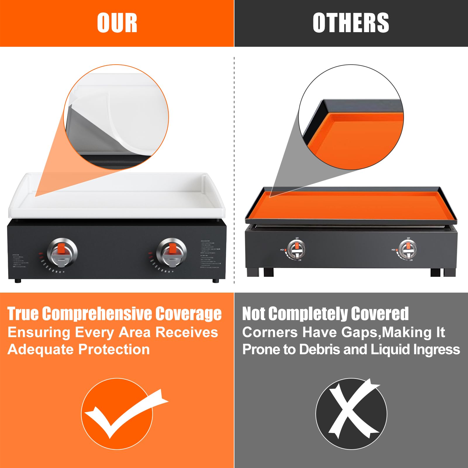 【FULL COVERAGE DESIGN】: Unlike other blackstone griddle mat that leave gaps in the corners, our innovative grill buddy mat provides full coverage, ensuring every inch of your cookware is fully protected from pesky pollen, leaves, and more.