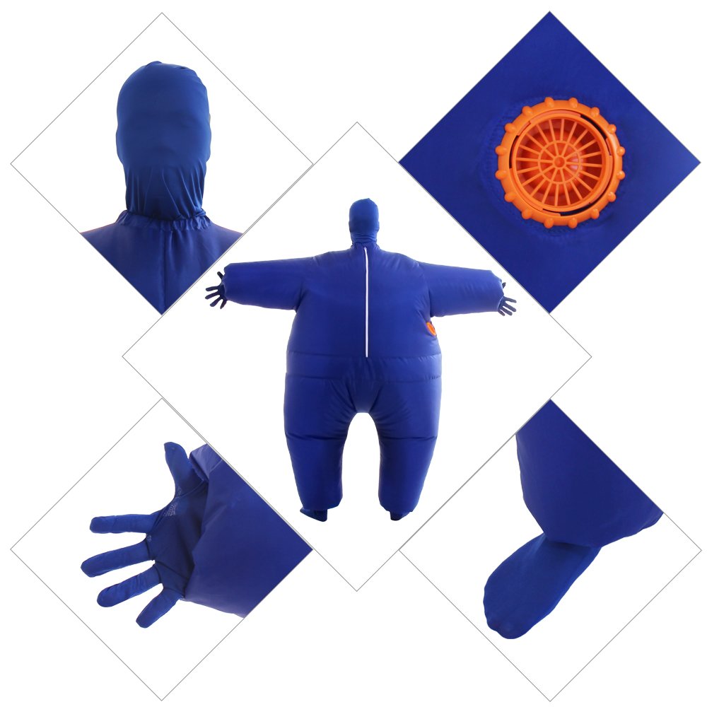 Quick Inflation – Built-in fan inflates the suit in seconds and keeps it full throughout your event.Included inflatable costume adult, cap, gloves and socks.