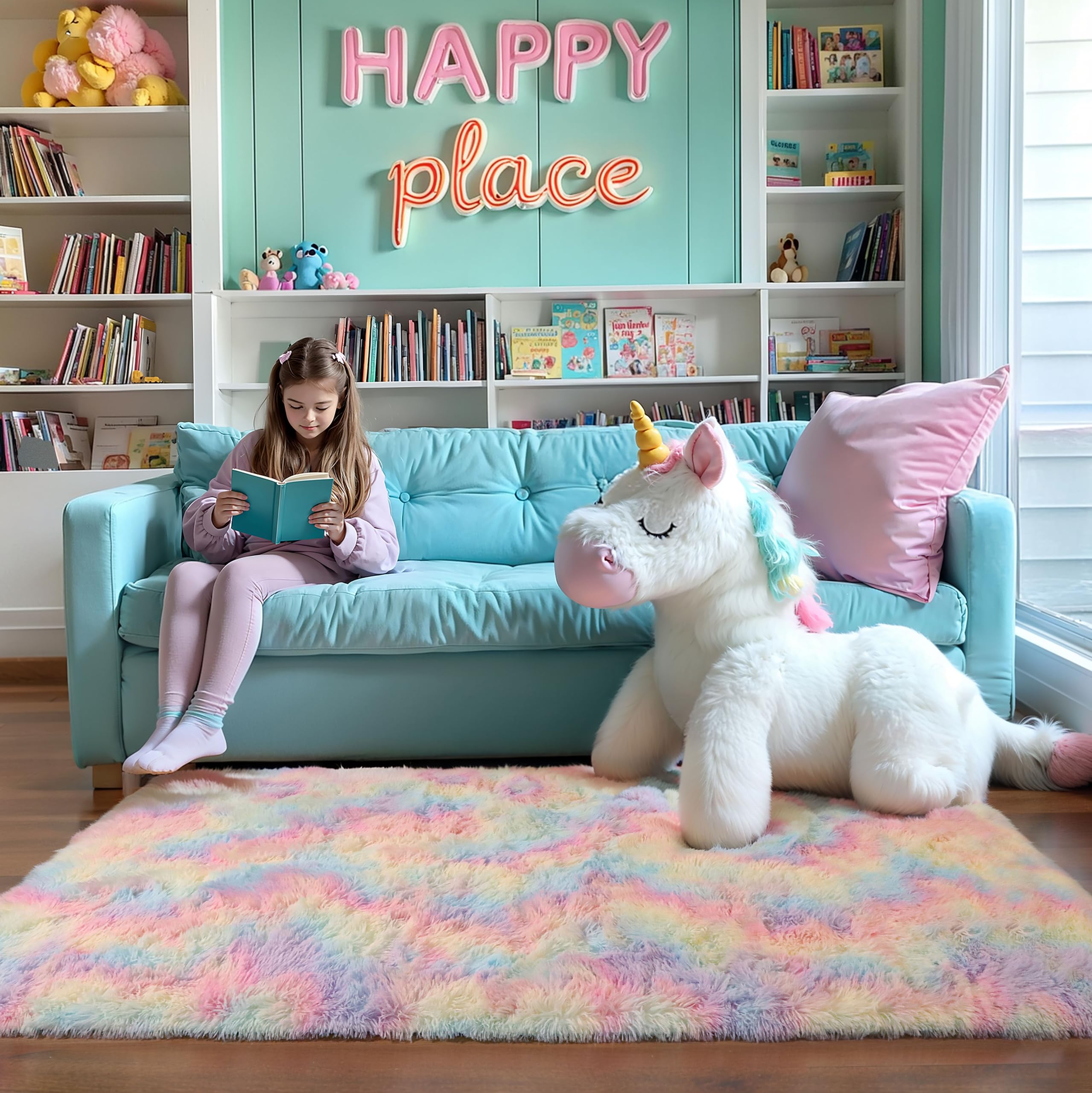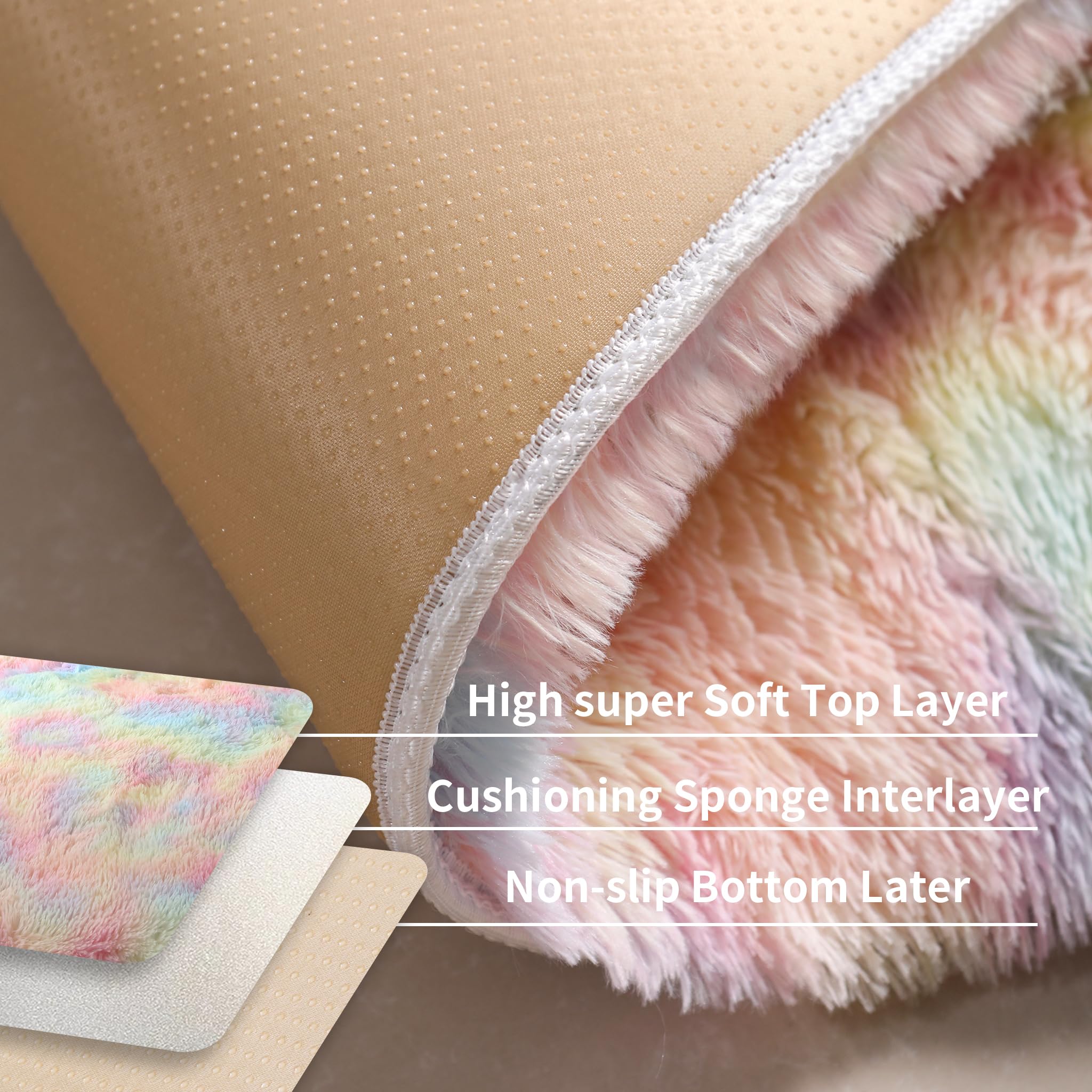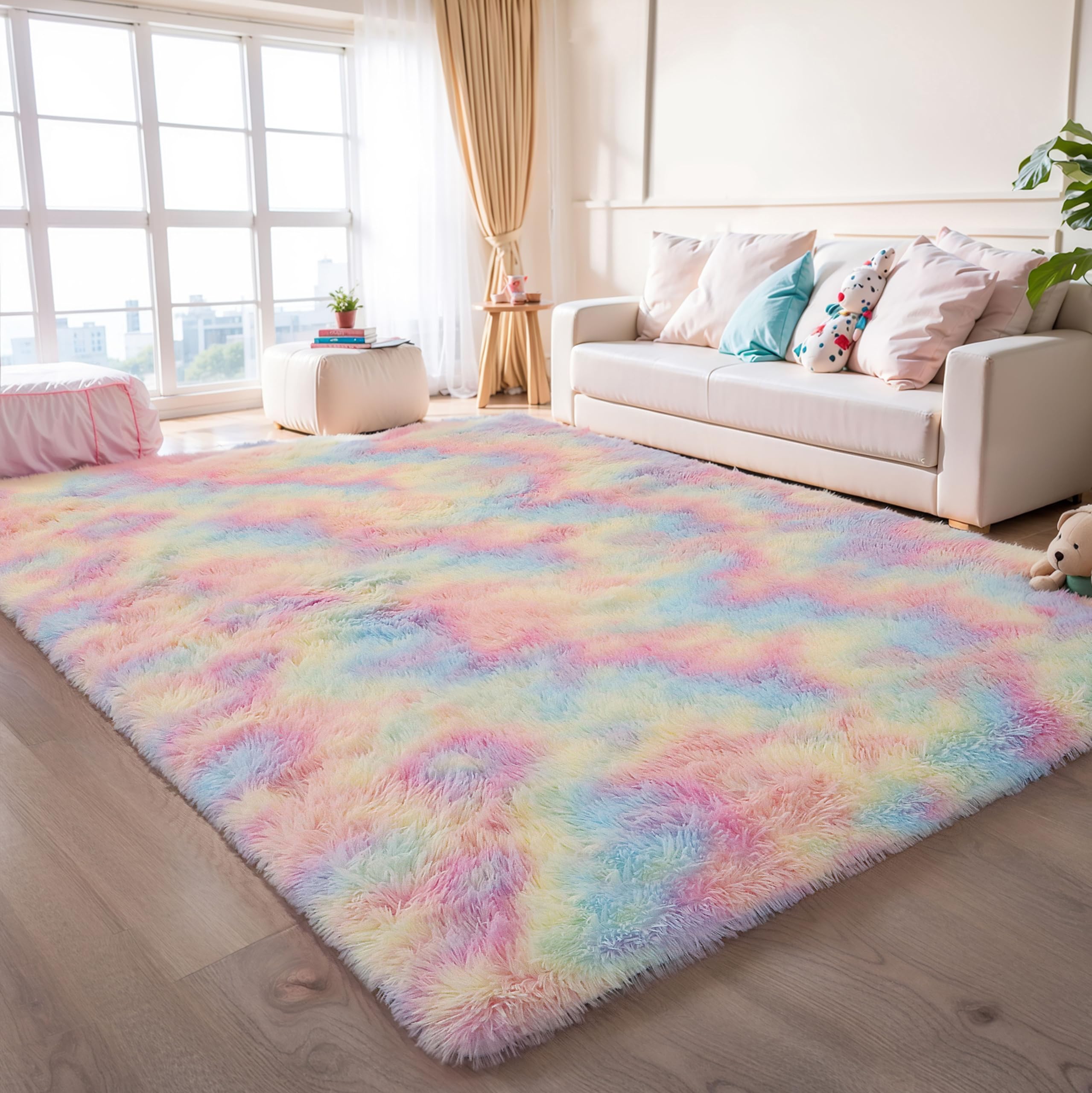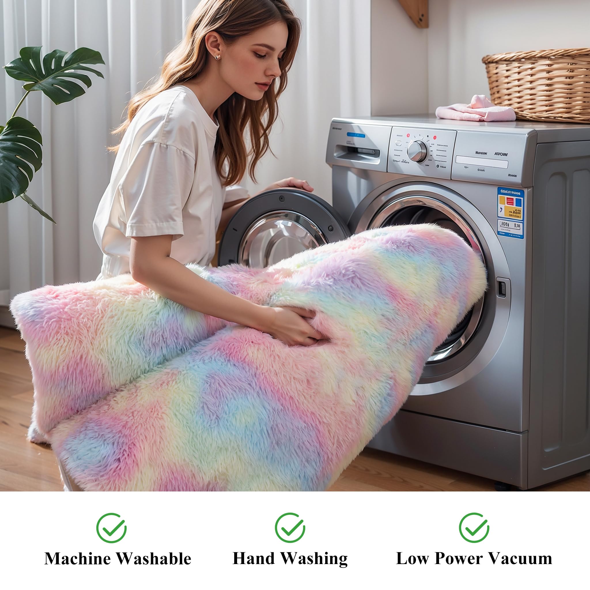 Important Note: To minimize resource waste, the rainbow rug is vacuum-packed for shipping. Upon unpacking, the carpet fibers may appear creased. Simply lay the rug flat for 2-3 days, and it will regain its fluffy and soft texture.