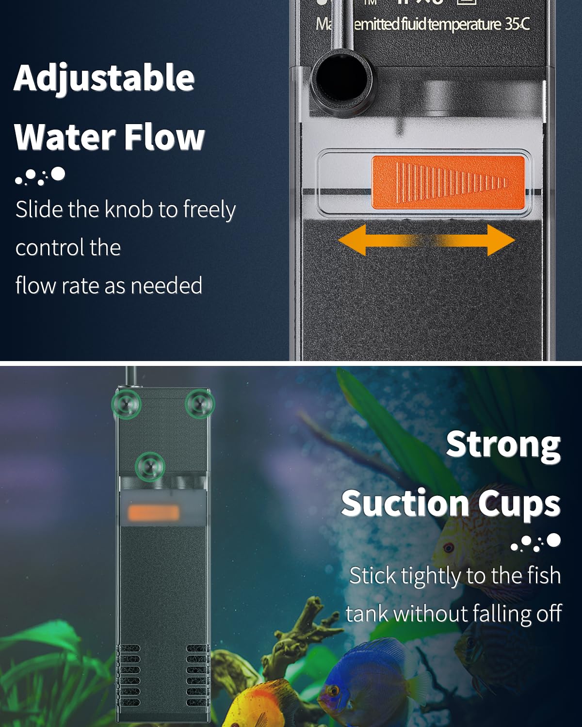 Oxygen Supplement: The fish tank filter is equipped with clear airline tubing for easy air entry. Produce numerous bubbles – a great way to increase oxygen solubility in the water and enliven the aquatic lives.