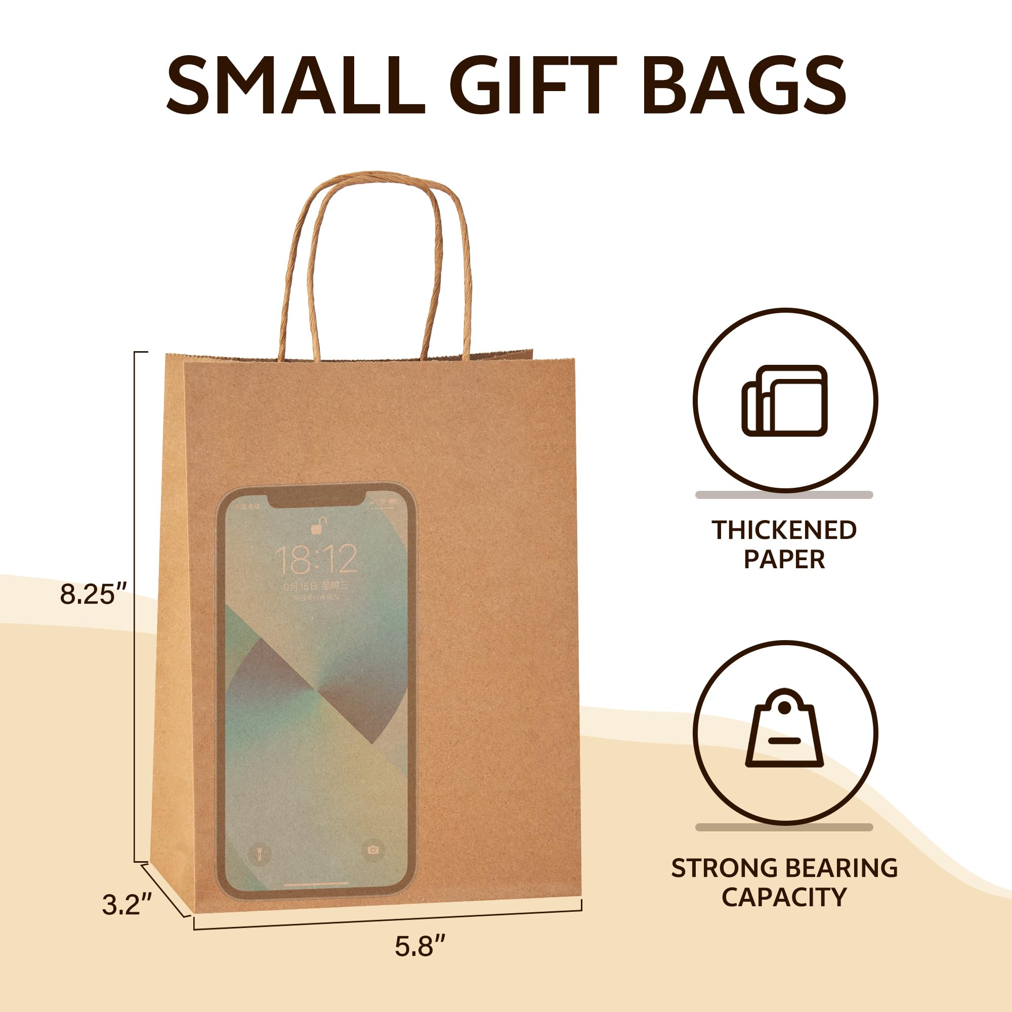 High-quality Material: These 100 Paper gift bags are made from high-quality, recyclable kraft paper, no peculiar smell and look a lot classier as gifts bags,these bags are an eco-conscious choice for those looking to minimize environmental impact.