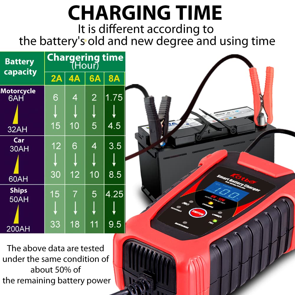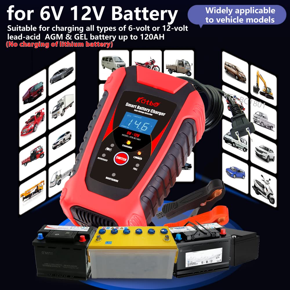 √ Fully intelligent, Keep your battery charged and health:Battery Charger automotive 6-Amp 6V, 12V Fully-Automatic Smart, It's smaller but delivers more power. 6V(2A),12V(6A battery maintainer, trickle charger, plus battery desulfator. Charge or repair all lead-acid automotive, marine, and deep-cycle batteries, including AGM, GEL, SLA, and Flooded in cars, trucks, SUVs, motorcycles, lawnmowers, boats, marine, etc.
