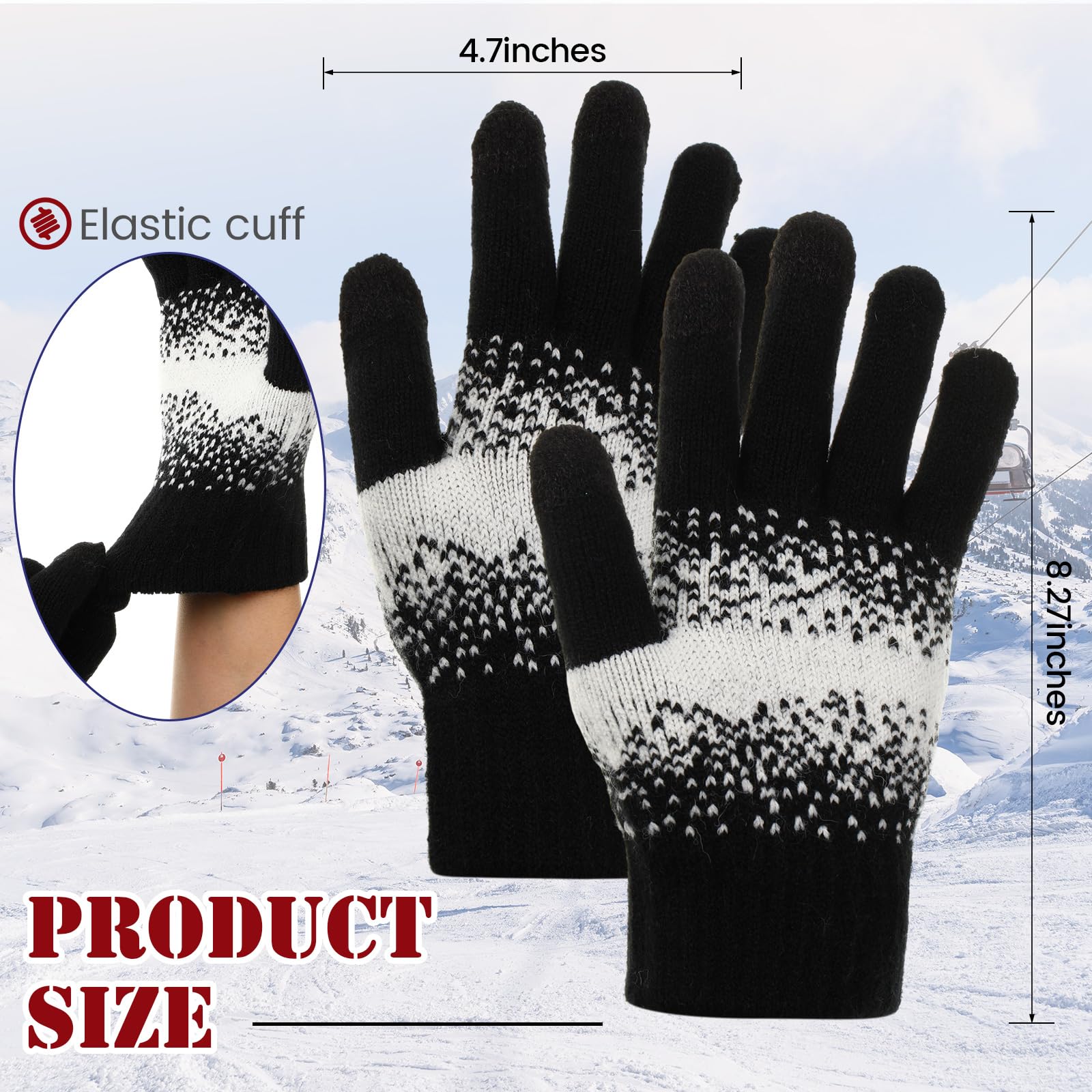 One Size Fits Most: each women touch screen gloves measures approx. 8.75 inch long, and 4 inch wide at wrist part, these women gloves are in middle size, with nice elasticity, suitable for almost all women, ladies and girls, without worrying about it slipping from your hand