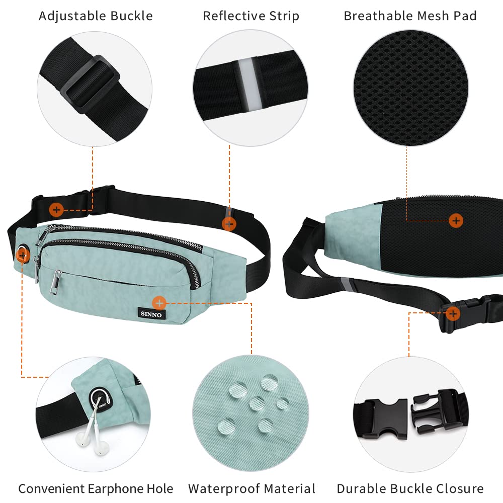 【Have More Safety And Fun】With our creative design womens mens fanny pack a small hidden zipper compartment inside the main pocket perfect for your valuables for extra security.The headphone hole allows you to listen to music or the function of call during fitness and walking so that you can free your hands to enjoy your personal time.