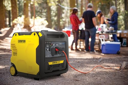 The Champion Power Equipment 6500-Watt Inverter Generator with CO Shield® is the perfect combination of power and portability, making it ideal for camping, tailgating, powering your RV, or providing reliable backup power for your home essentials. With 6500 starting watts and 5000 running watts, this inverter generator delivers dependable power for a wide range of applications. A full fuel tank provides an impressive run time of up to 15 hours at 25% load, keeping your equipment powered longer so you can focus on what’s important. Operating at an ultra-quiet 64 dB(A) from 23 feet—about as loud as a normal conversation—this inverter generator runs with minimal disturbance for you and your surroundings. Equipped with versatile covered outlets, this generator includes a 120V 20.8A RV outlet (TT-30R), a 120/240V 20.8A locking outlet (L14-30R), two 120V 20A GFCI household duplex outlets (5-20R), and a 12V automotive-style outlet. Plus, it produces Clean Power (less than 3% THD), ensuring safe operation for sensitive electronics like laptops, phones, and medical devices. Champion’s EZ Start Dial makes starting your generator quick and hassle-free, while the Quick Touch Panel gives you fast access to all your controls. The Intelligauge with Power Meter makes it easy to monitor voltage, frequency, and operating hours, while Economy Mode monitors power consumption in real time, reducing engine wear, extending run times, and maximizing fuel efficiency. Transport and storage are effortless thanks to the foldaway U-shape handle and never-flat wheels, which make it easy to take power wherever you need it. Powered by a reliable 223cc Champion engine, this unit features a no-tool access panel and oil drain tube, making maintenance simple and straightforward. This EPA-certified inverter generator is backed by Champion’s 3-year limited warranty and FREE lifetime technical support, plus the support of our nationwide network of service centers, giving you peace of mind with every purchase. CO Shield® technology monitors the accumulation of carbon monoxide (CO), a poisonous gas produced by engine exhaust when the generator is running. If CO Shield® detects unsafe elevated levels of CO gas, it automatically shuts off the engine. CO Shield® is not a substitute for an indoor carbon monoxide alarm or for safe operation. DO NOT allow engine exhaust fumes to enter a confined area through windows, doors, vents or other openings. Generators must ALWAYS be used outdoors, far away from occupied buildings with engine exhaust pointed away from people and buildings. Meets the requirements of ANSI/PGMA G300-2018.