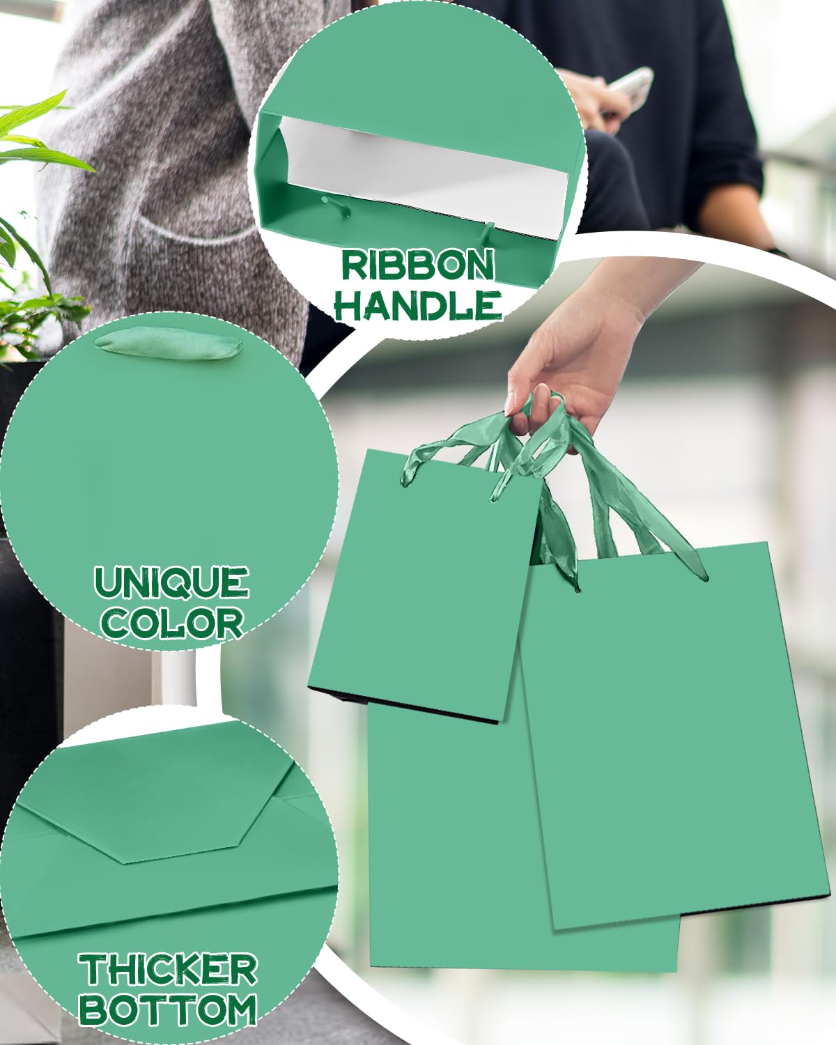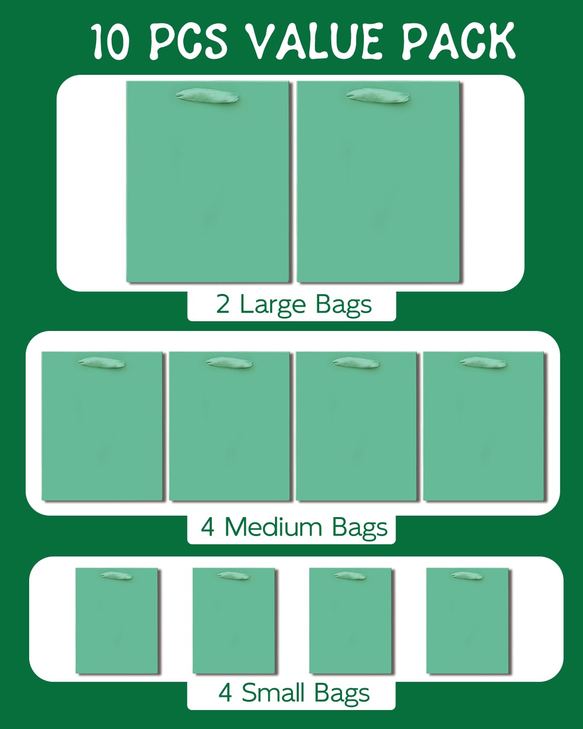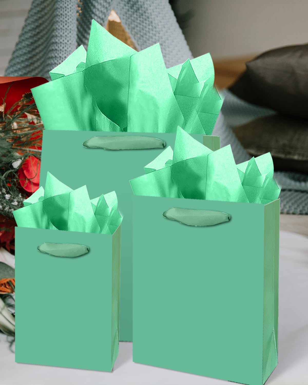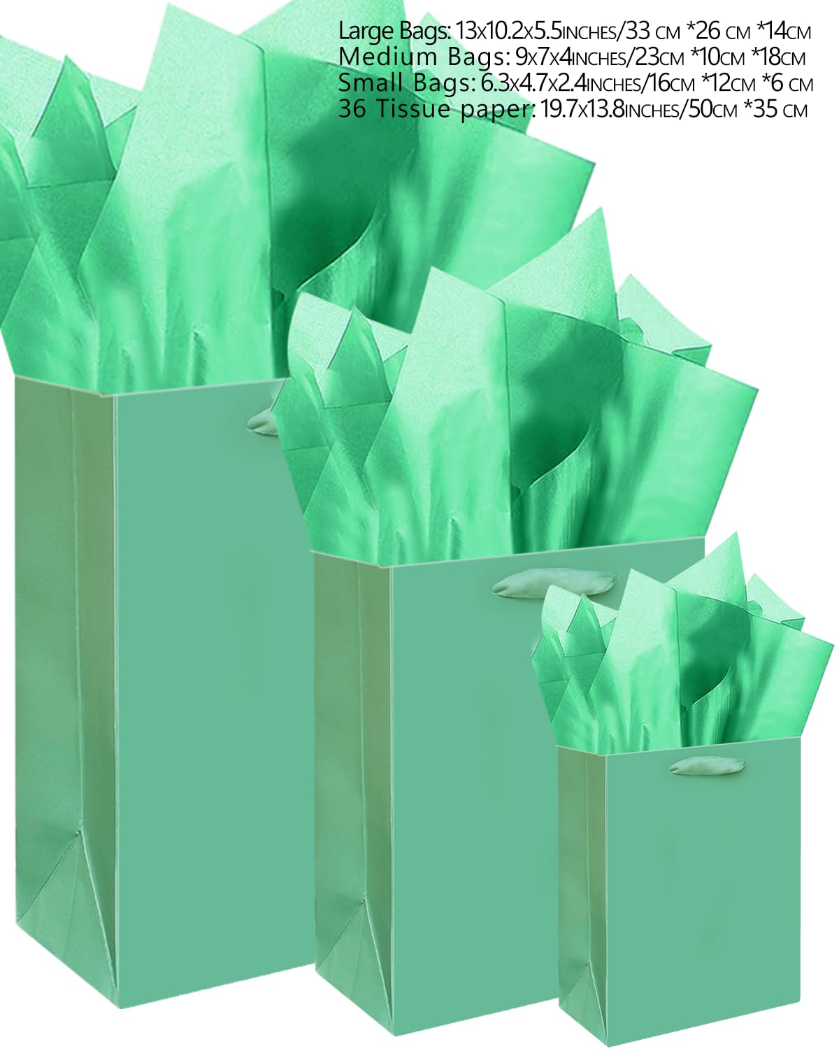 Size-Color: Lake Green / (2pcs Large 5.5x10.2x13 inch, 4pcs Medium 4x7x9inches, 4pcs Small 2.4x4.7x6.3inches ) / 6Pcs Tissue Paper-13.8"x19.7",16Pcs Tissue Paper-9.8"x13.8"