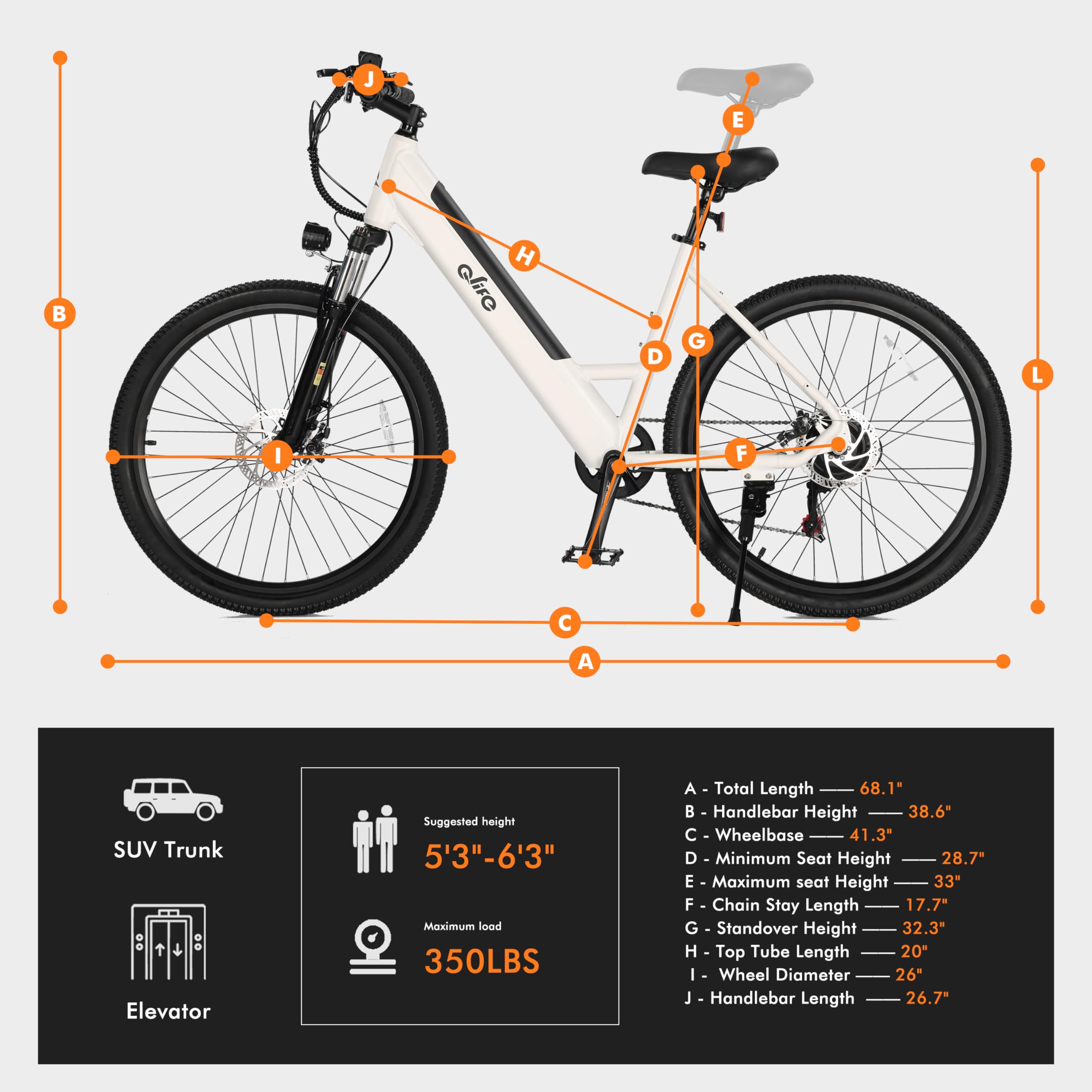 Adaptable Step-Thru City E-bike - Adjustable seat suits heights 5'4" to 6'5". Crafted from durable materials,, it supports up to 350lbs and includes a one-year warranty for added peace of mind.