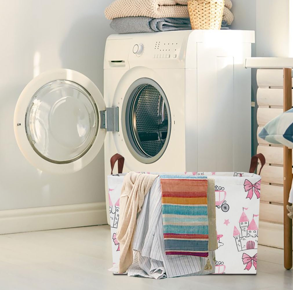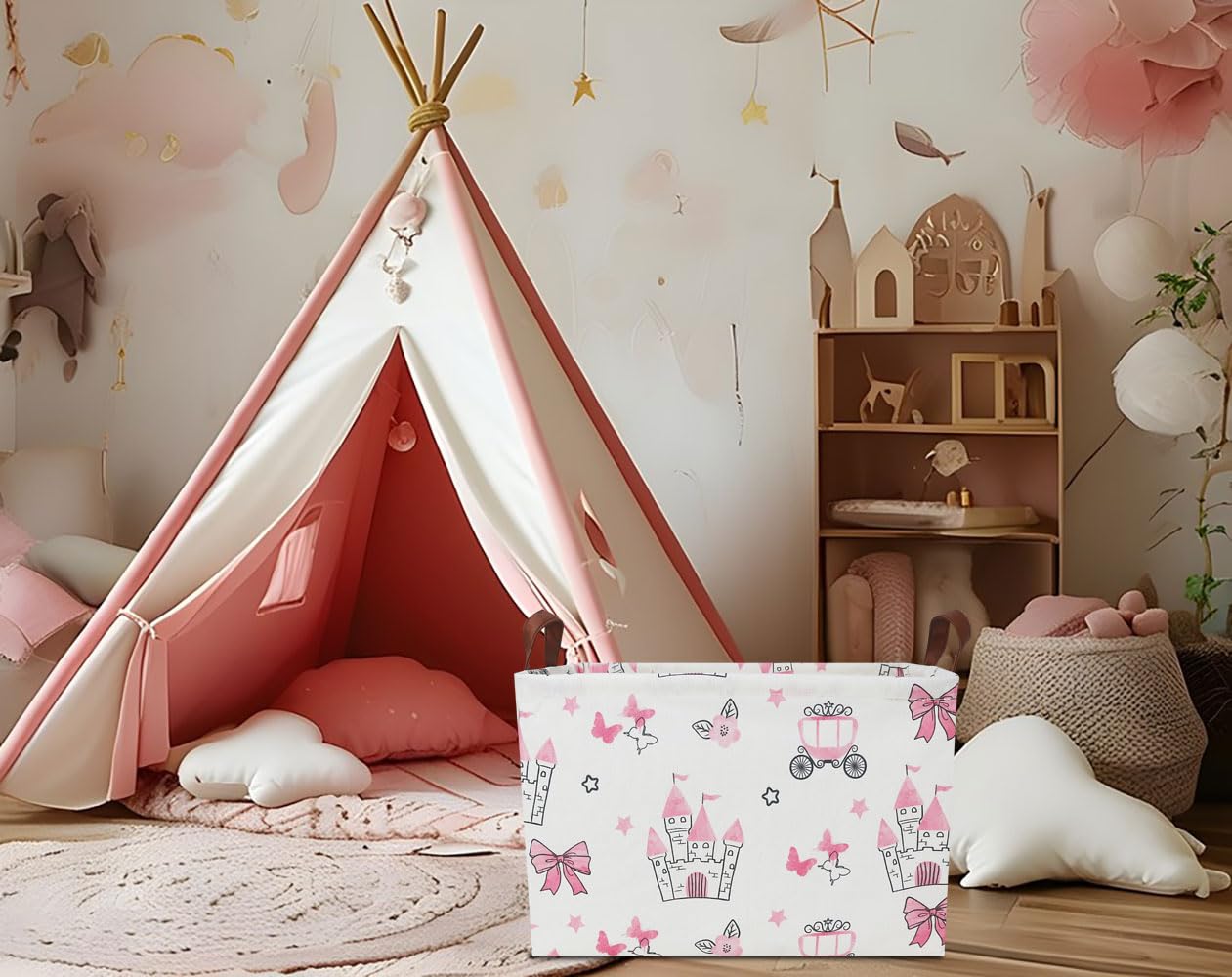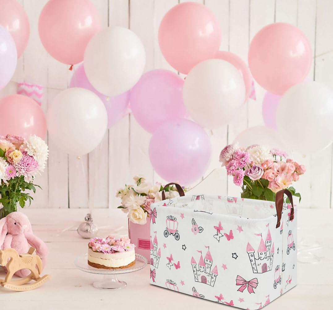 FOLDABLE BASKET SIZE: 14.9”L×10.2”W×9.8”H inches. Save on space when not in use and fold flat for easy storage, Perfect for baby shower gifts, toys, books, clothes, games, baby doll accessories, or match-box cars.