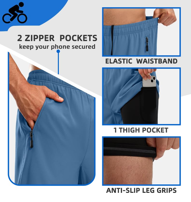 Multily Pockets: Total of three well-made and designed pockets provide a ton of storage, two side zipper pockets and one inner right thigh pocket can keep your phone, keys, wallet and energy gels secured during biking.