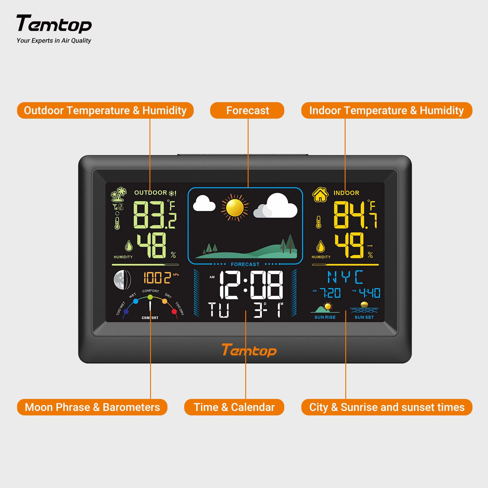 All-in-One Weather Tracking: Monitor indoor/outdoor temp (°F), humidity (1-99% RH), and barometric pressure (inHg). Get a precise 12-hour weather forecast so you’re always ready for sudden changes