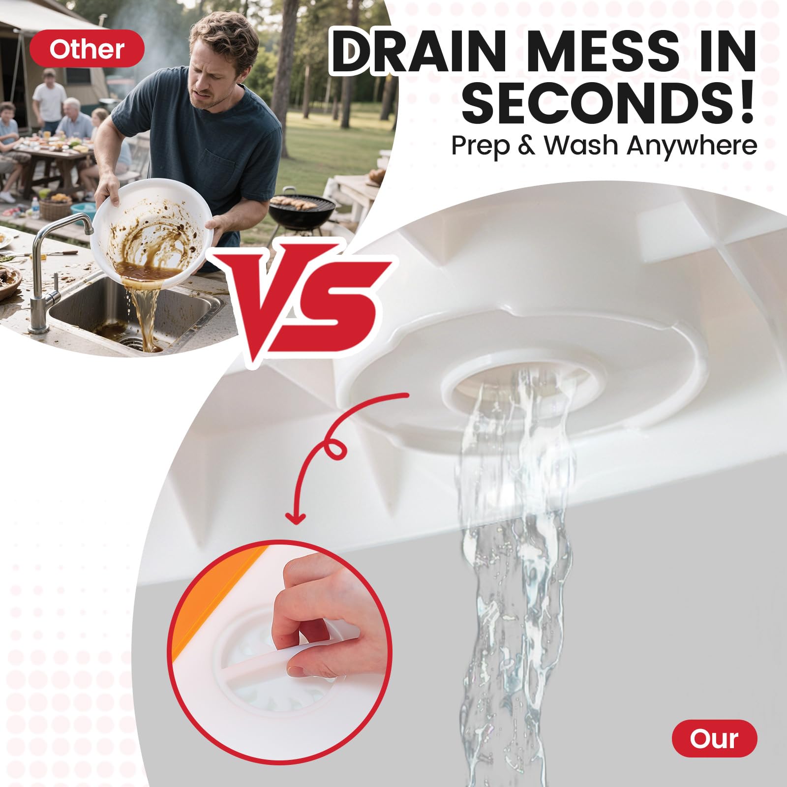 đ„ŹăQuick CleanupăFeaturing convenient drainage holes, our bbq meal prep tub lets you easily dispose of water after washing dishes or food. Use the prep tub with cutting board for meat as a colander, a cutting surface, or a marinating container. Cleaning up after meals has never been this simple!