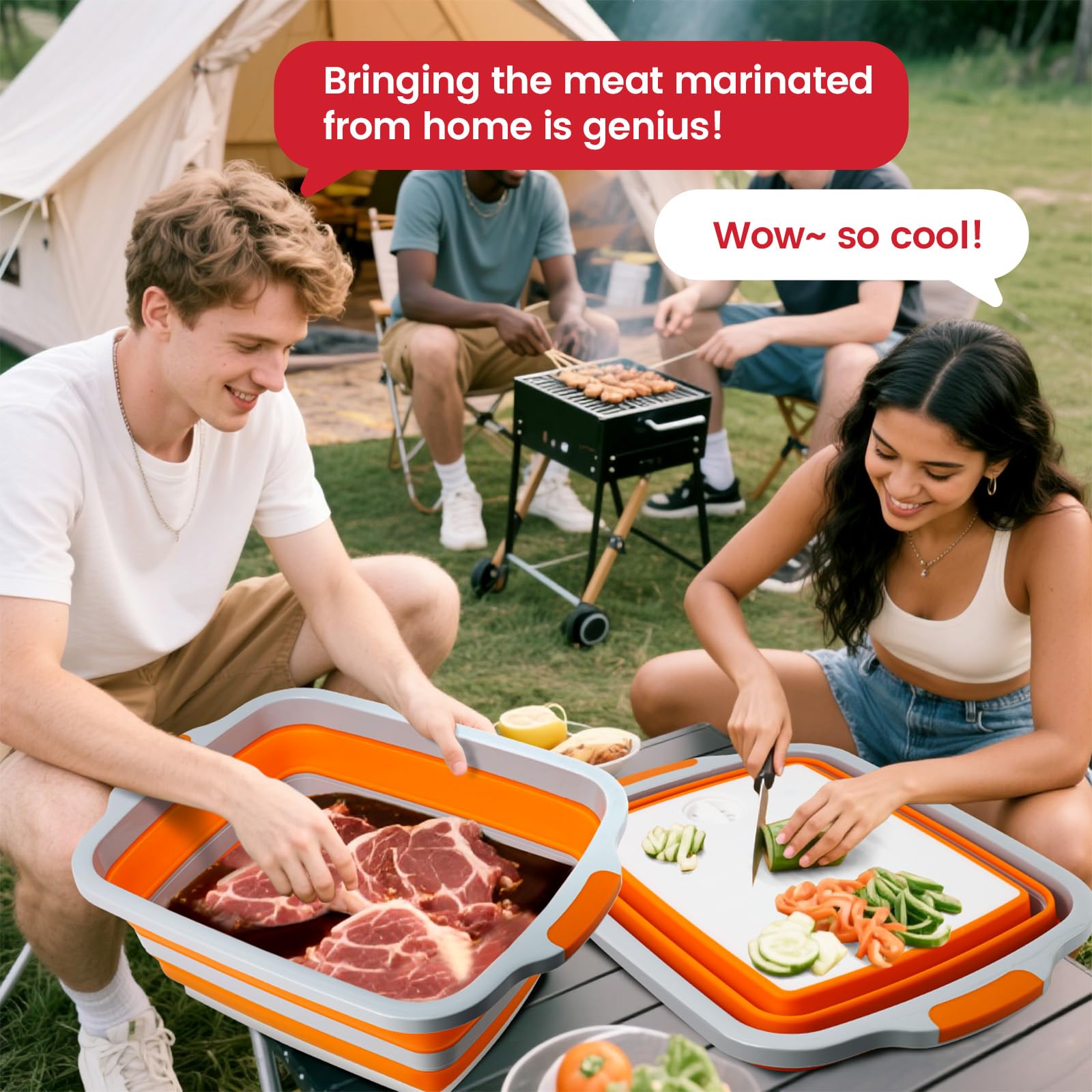 đăMulti-purpose TubăTake the collapsible cutting board tub camping as a portable wash basin, use it in the backyard for BBQ prepping, or even as a handy storage basket indoors. Meat prep tubâs designed to simplify your routine whether youâre grilling, picnicking, or cooking at home.