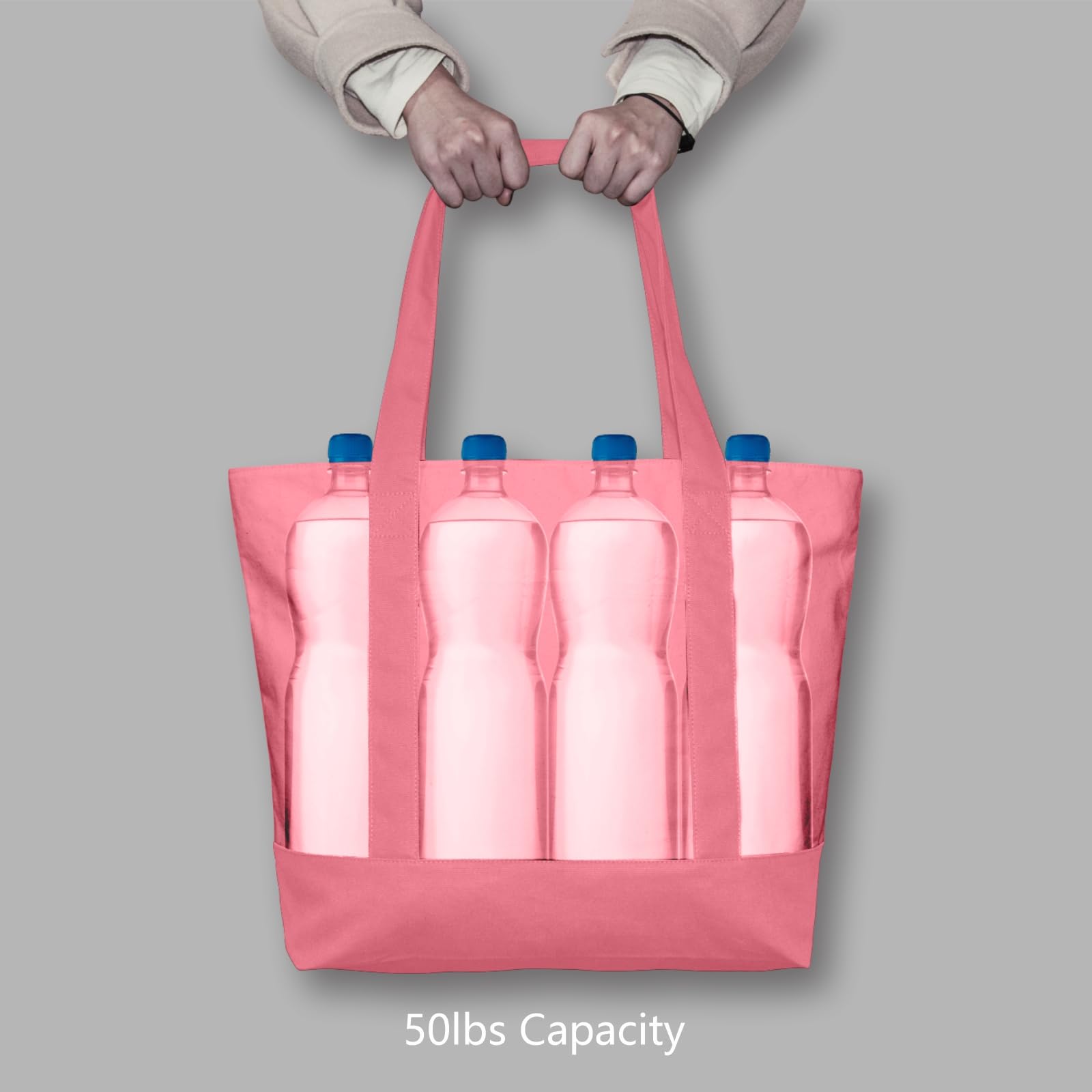 LARGE CAPACITY & DURABILITY: the size is 21" x 15" x 6" and it is made of heavy duty 100% 12oz cotton canvas with 8" x 8" outside pocket for carrying small items. Further, the top zipper closure makes your goods safer. Its handle is 1.5" W x 25" L, which is easy to carry or slung over a shoulder. The bags are made with dense thread and exquisite workmanship. All seams are reinforced and sewn to ensure their durability.