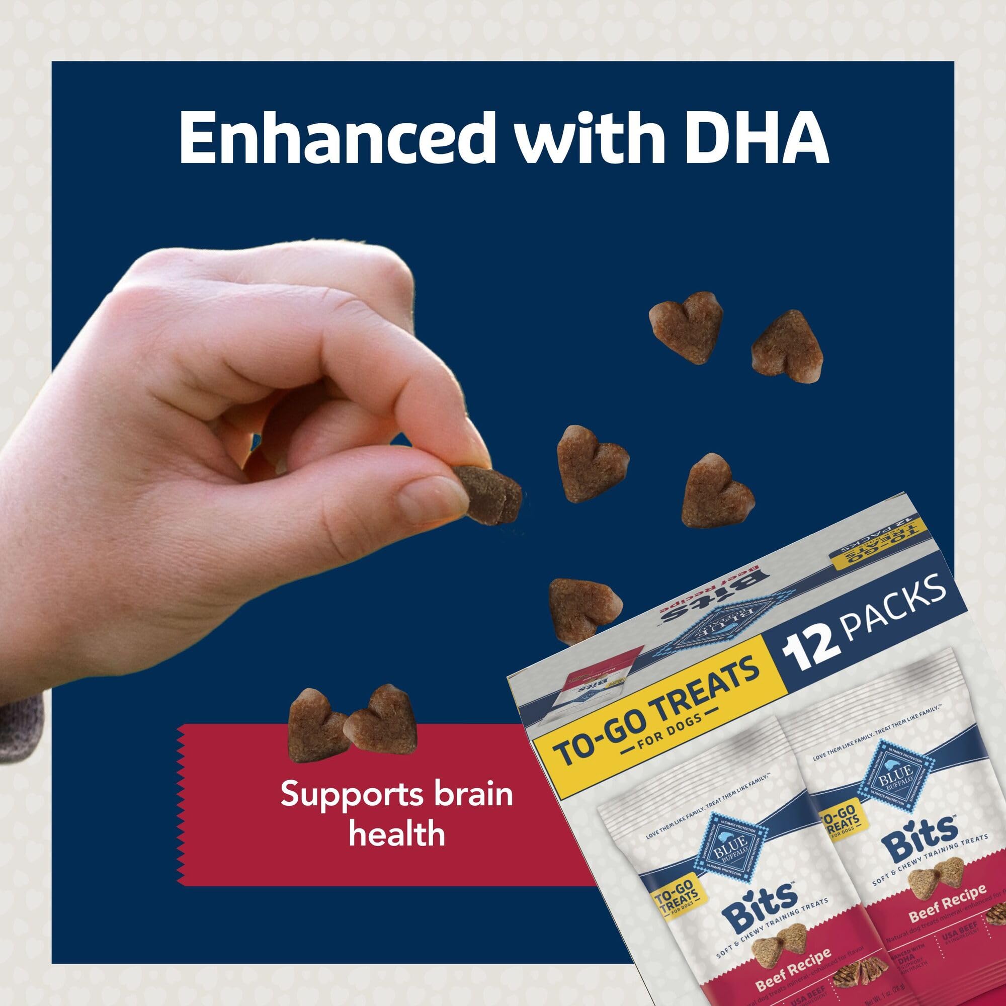 MEATY TRAINING TREATS: For dogs that love a meaty treat, BLUE Bits are tender, bite-sized morsels that are the perfect size for training; plus with DHA to help support cognitive development, they’re an ideal puppy treat