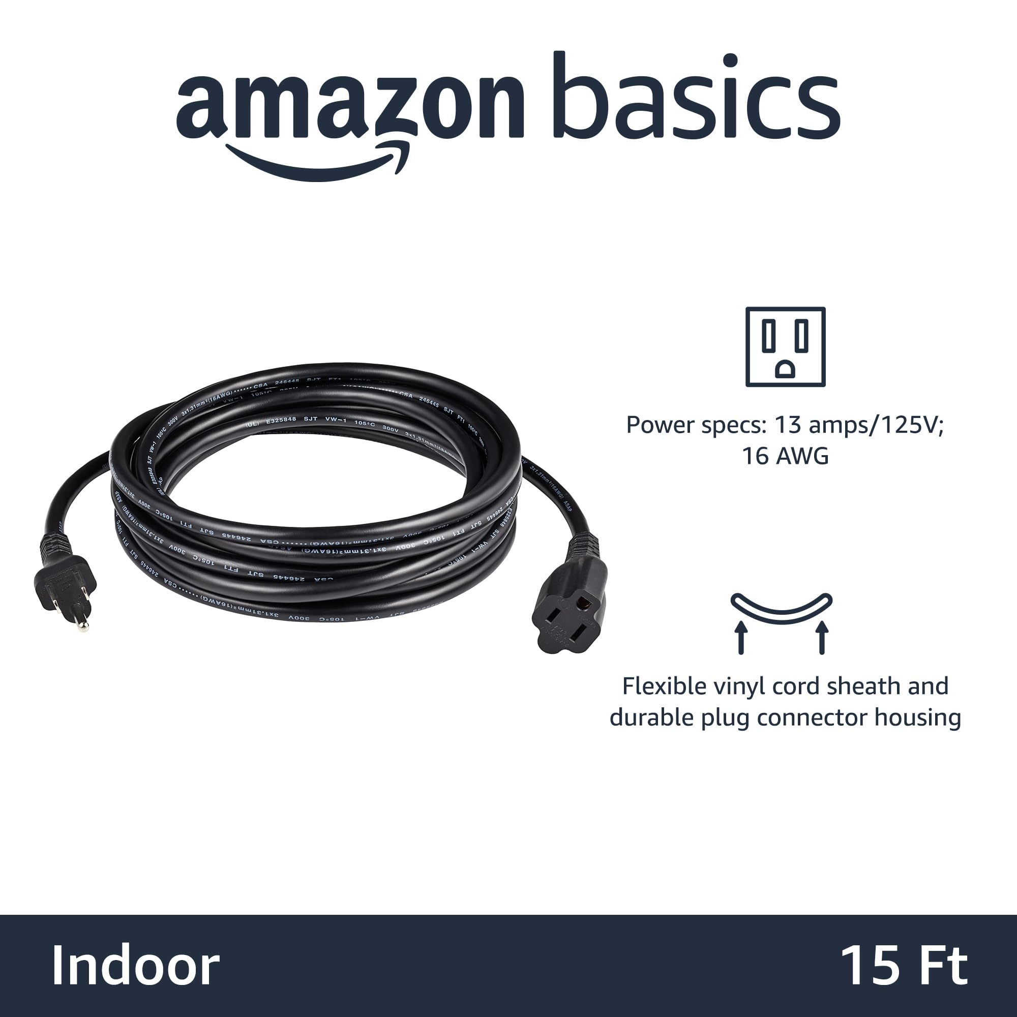 Product Description Amazon Basics 15-Foot Extension Cord - 13 Amps, 125V - 2-Pack, Black From the Manufacturer Amazon Basics