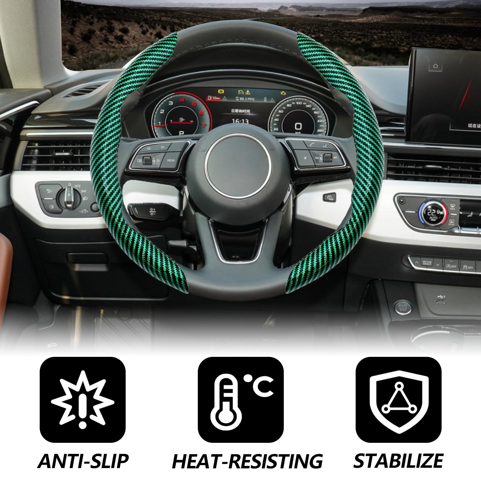 High Quality: Standing out for its durability and easy maintenance, carbon fiber material, the leather Steering Wheel Cover is light and breathable, wear-resistant and is not easily deformed.