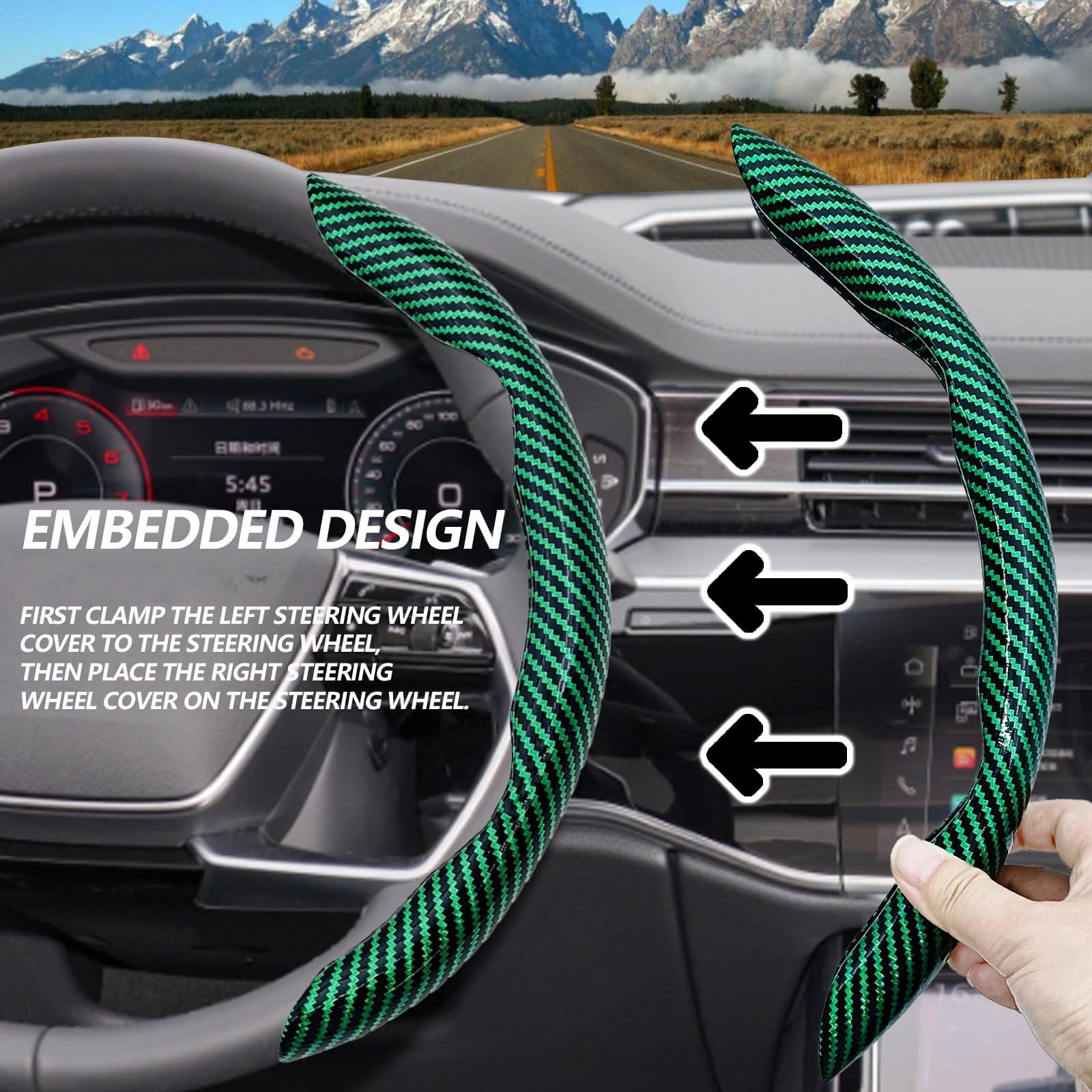 2pcs Car Carbon Fiber Anti-Skid Steering Wheel Cover Non-Slip Segmented