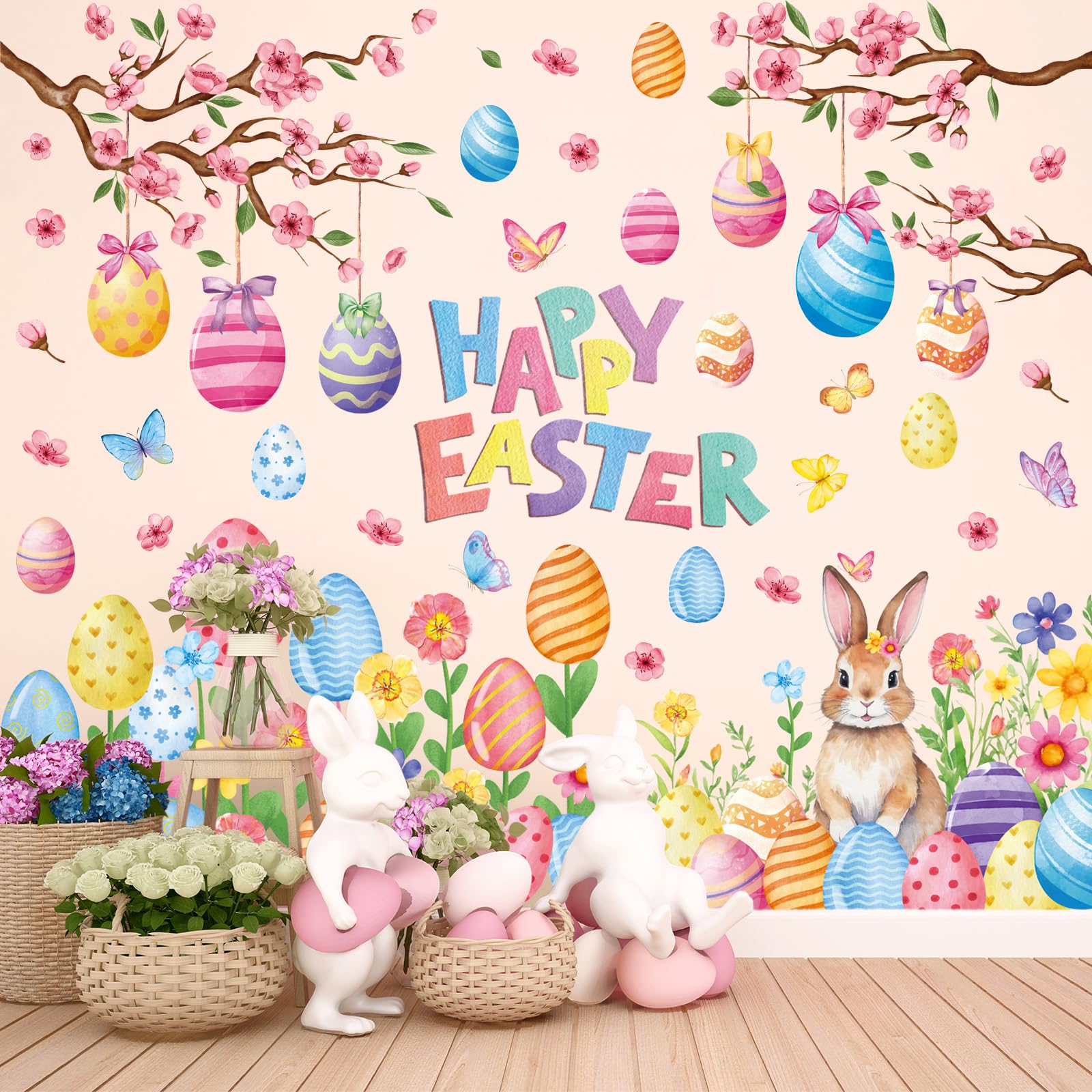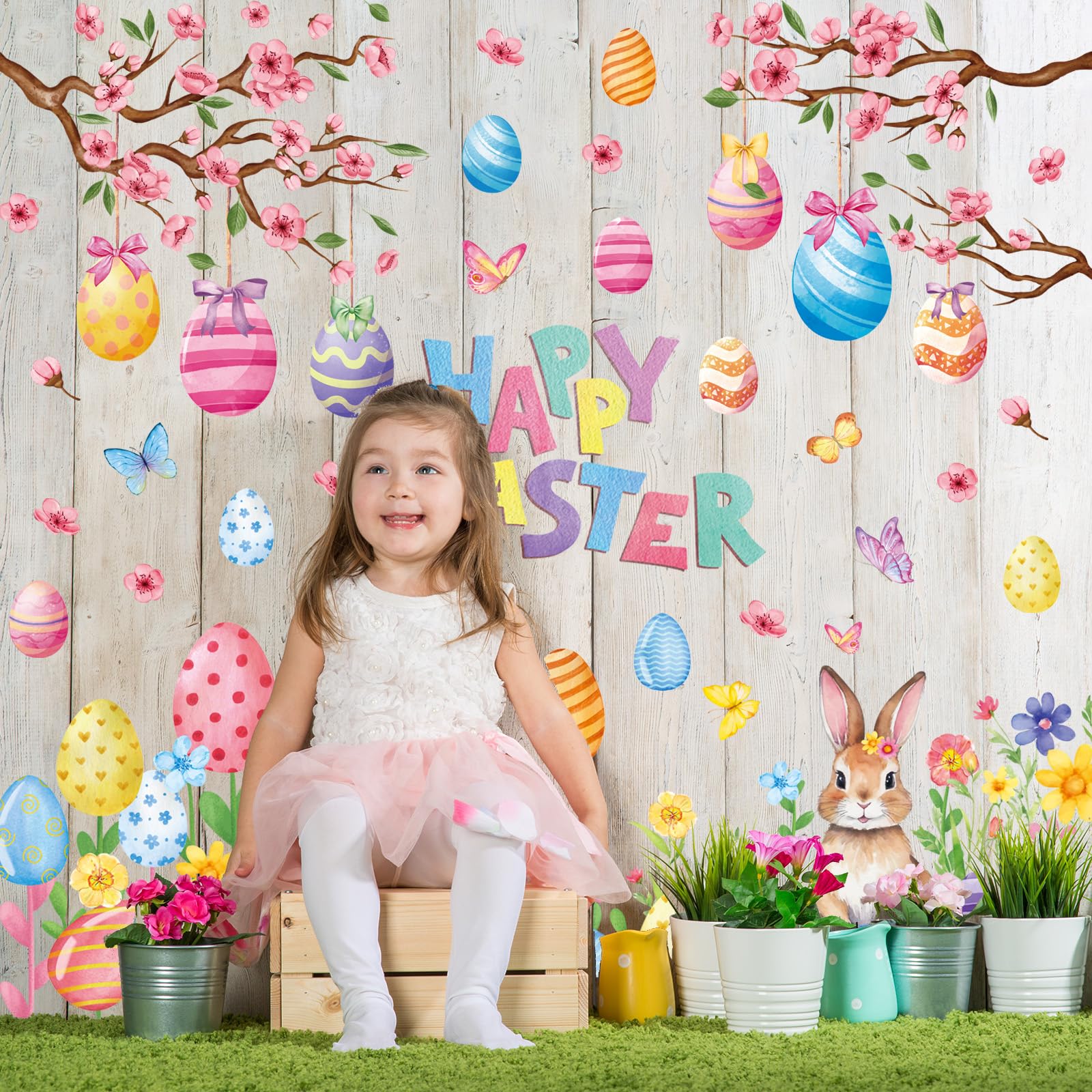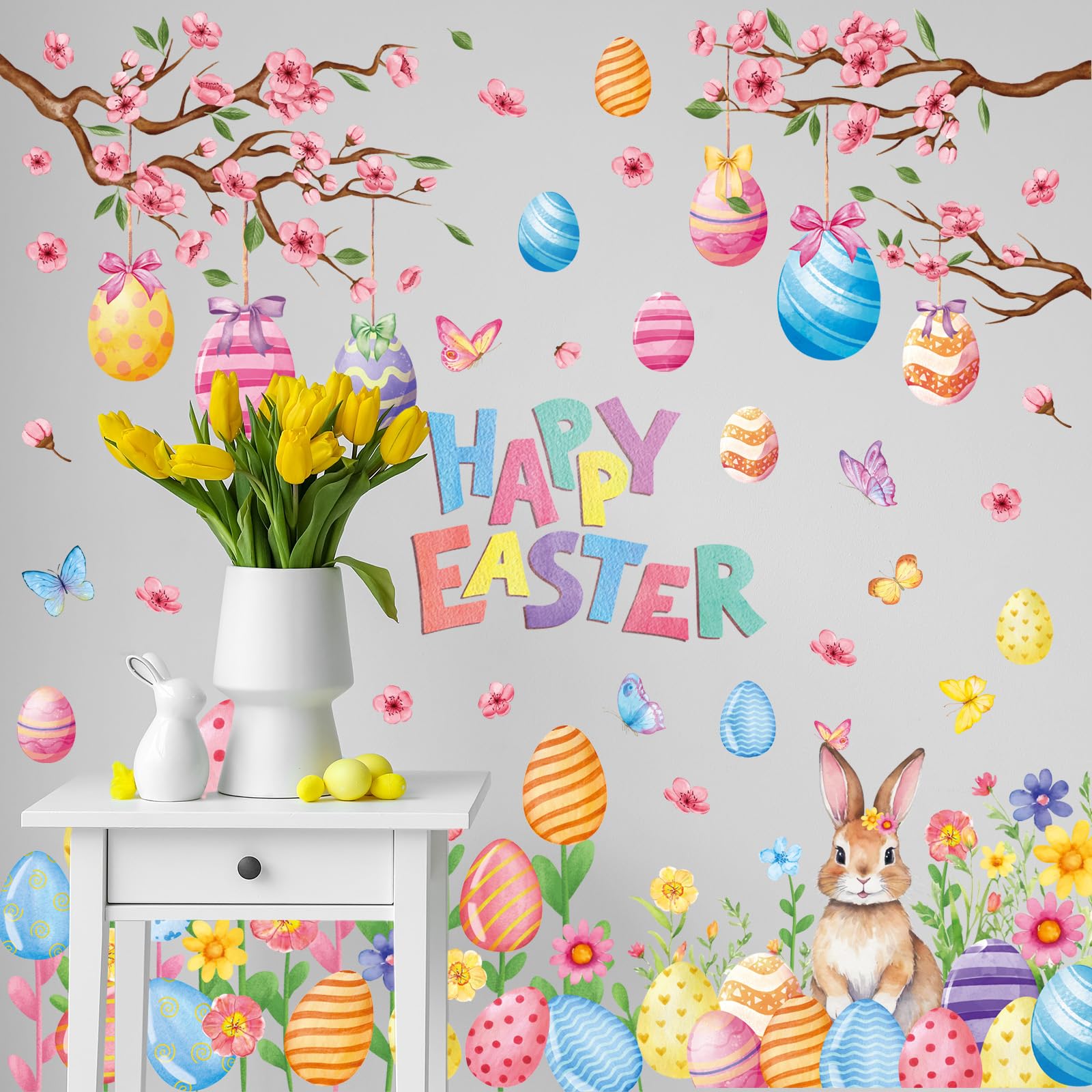 FLORAL EGG DESIGN: Our wall stickers adopt watercolor design with tree, bunny, flowers, butterflies and Easter eggs, delicate and colorful, will nicely increase festive atmosphere