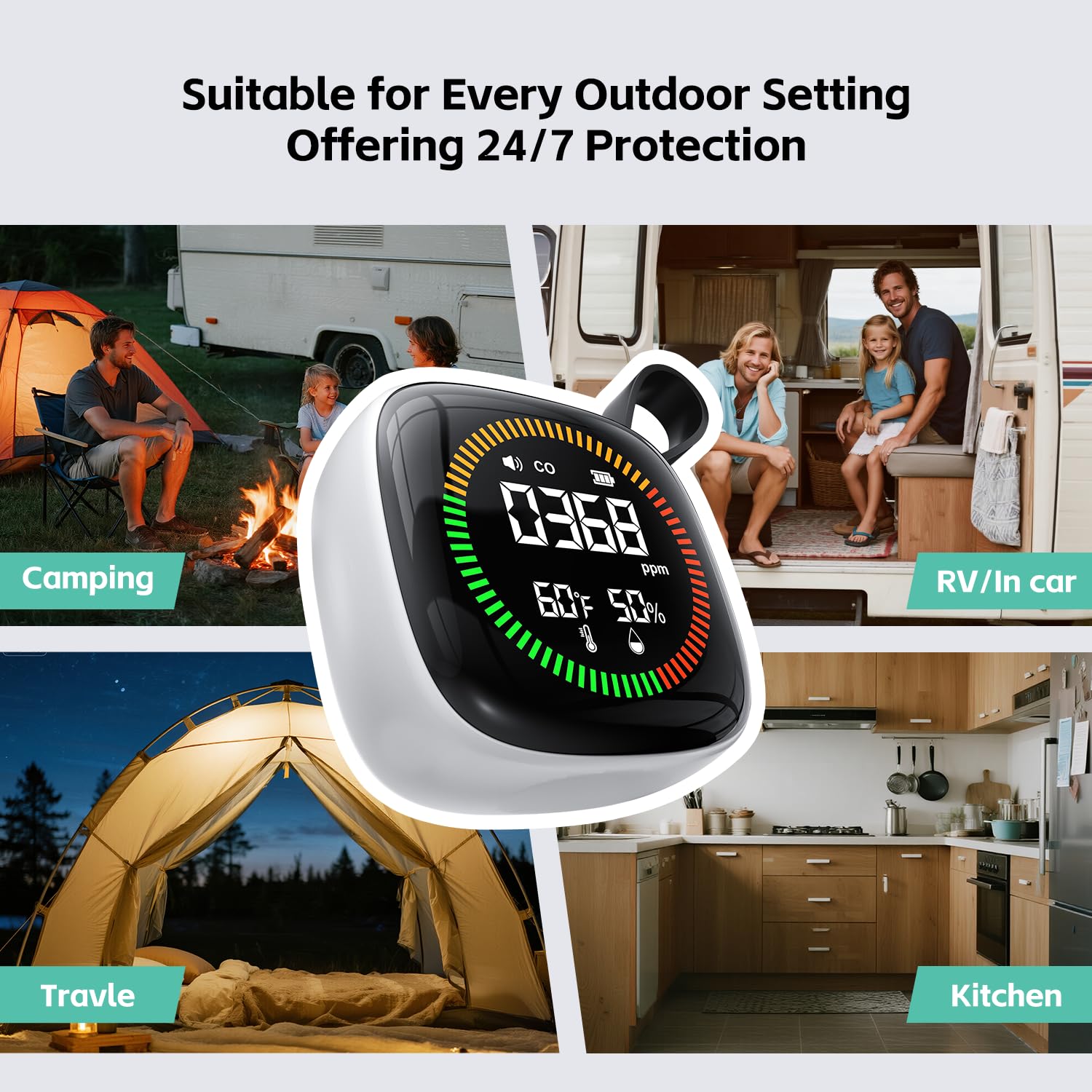 [Rechargeable & Long Standby]: This premium carbon monoxide detector combines a 1000mAh battery with Type-C charging and goes into a low-brightness power-saving mode after long periods of inactivity. Enjoy up to 7x24 hours of standby time and experience the freedom to travel! Ideal for camping, travel, and vacation.