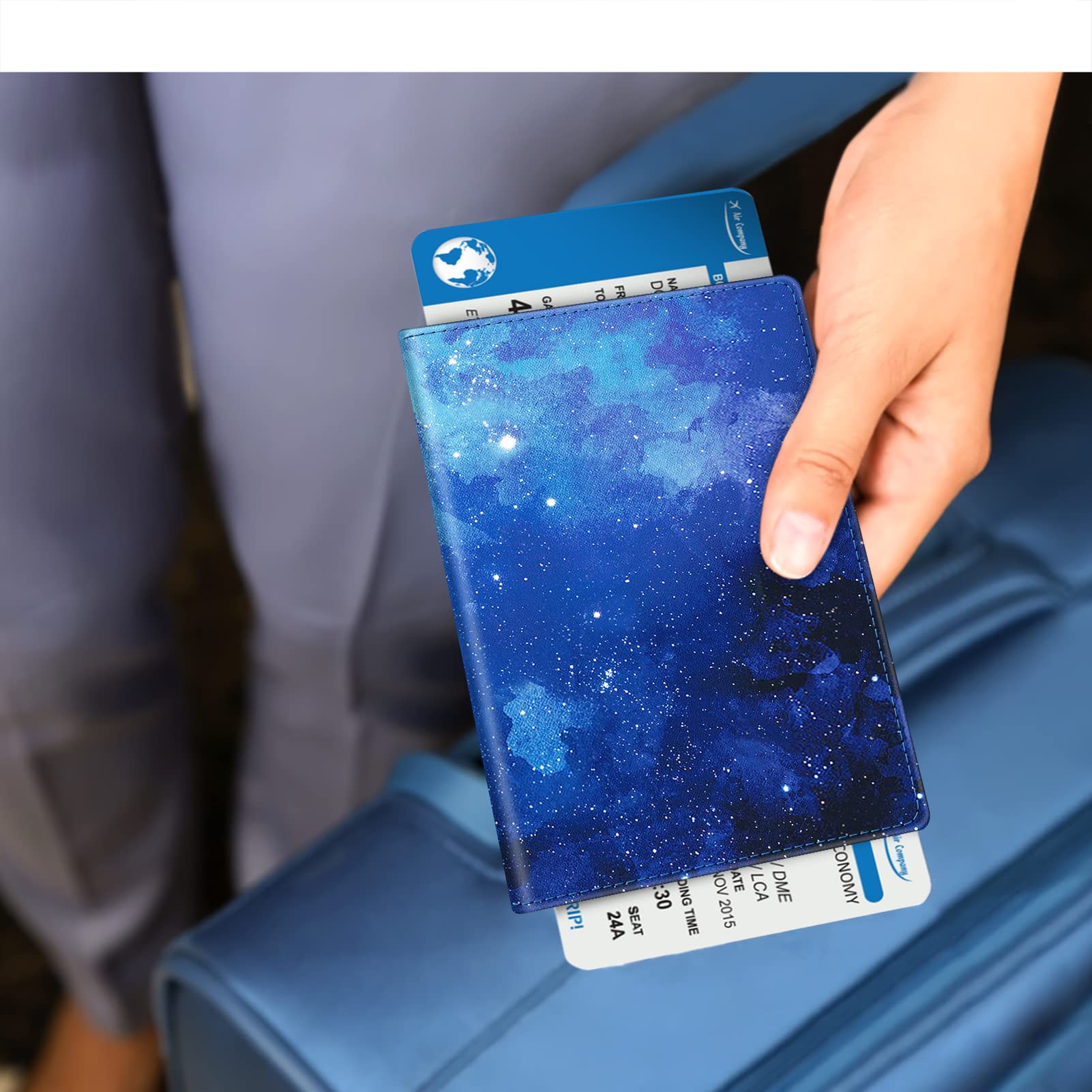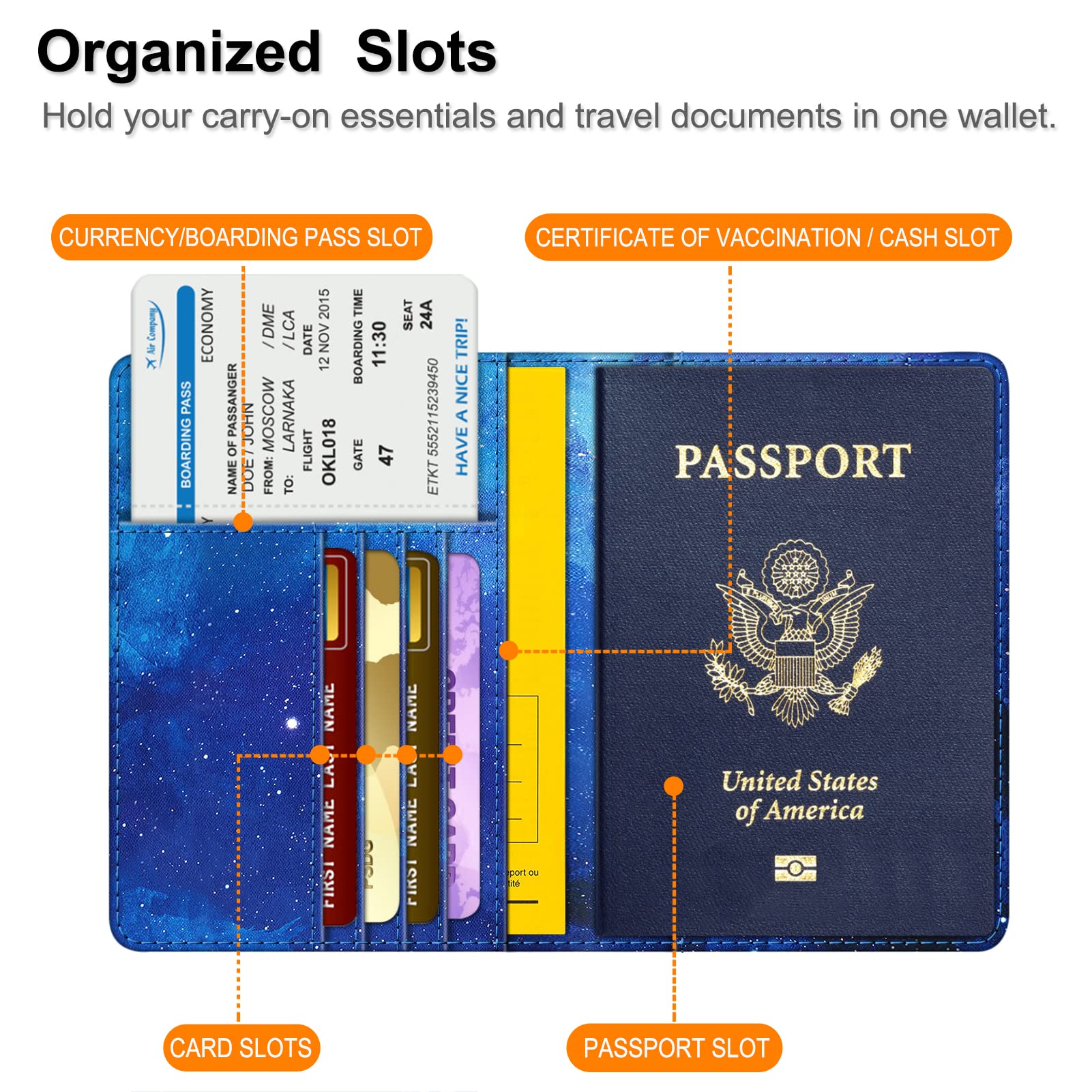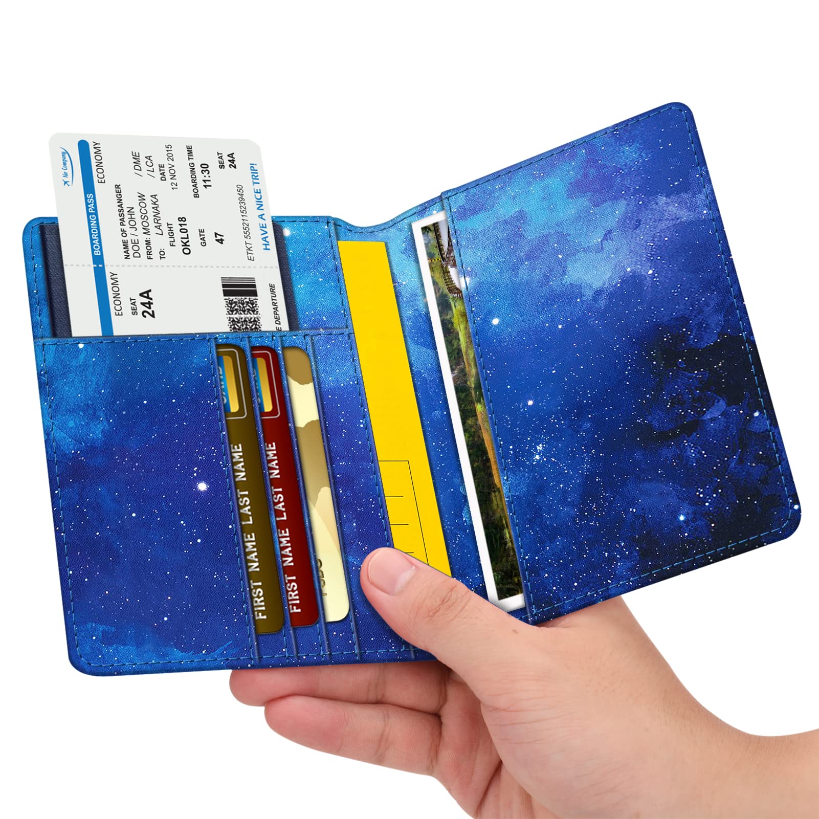 Big Capacity: The passport holder is equipped with practical slots that are designed to hold your passport, business cards, credit cards, and boarding passes efficiently. This enables convenient access to important information during the boarding process and while in transit, keeping everything organized in one place.