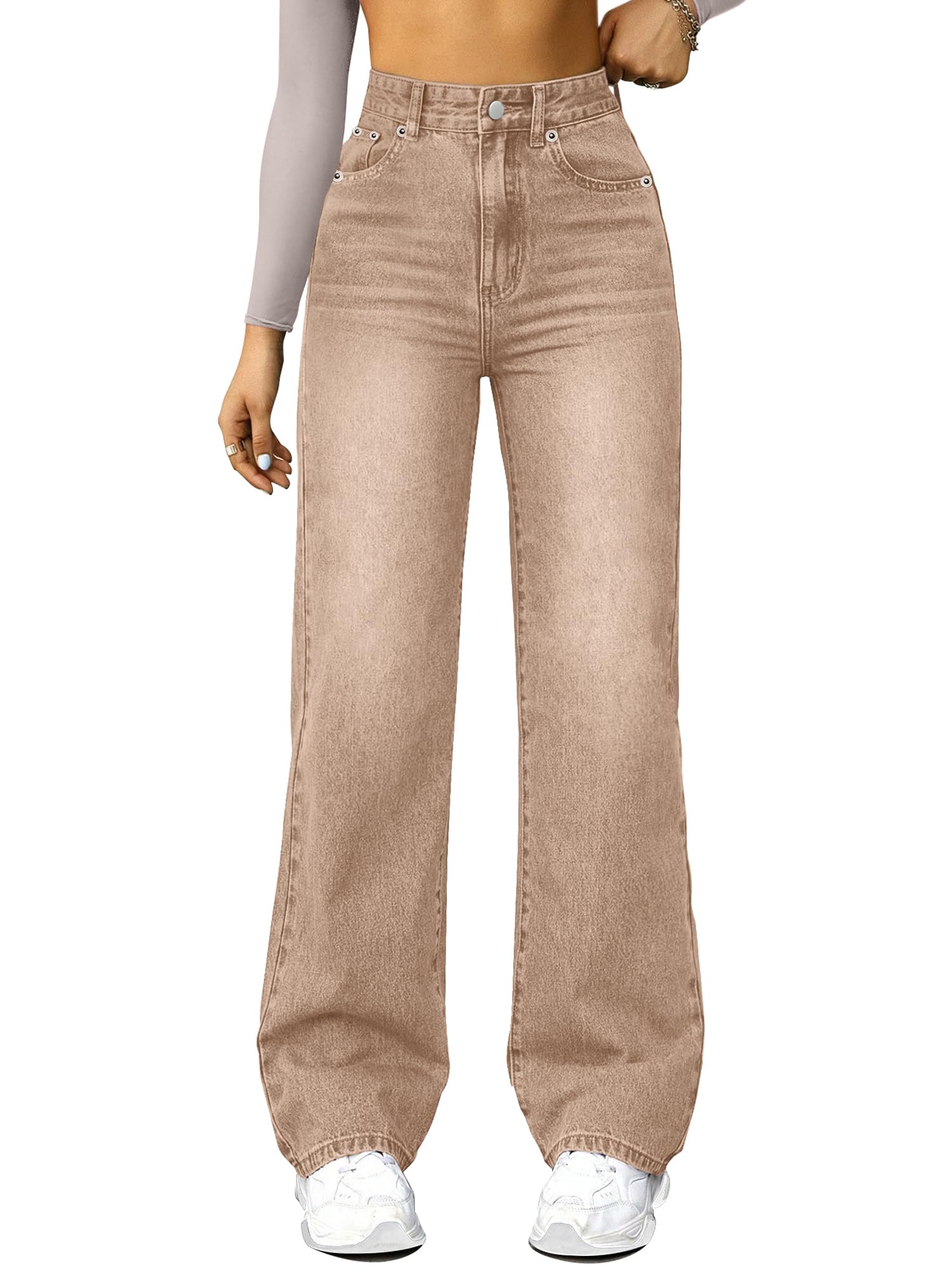 NOTE:The product size is measured manually and may have a discrepancy of 1-2 cm. Please noted that the size in the size chartis the size of the jean, not the body size.NOTE:Runs large – consider sizing down Stylish High-Rise Design: This pair of high-rise, straight-cut, wide-leg boyfriend jeans boasts a trendy high waist design, exuding a unique sense of fashion that positions you as a trendsetter.