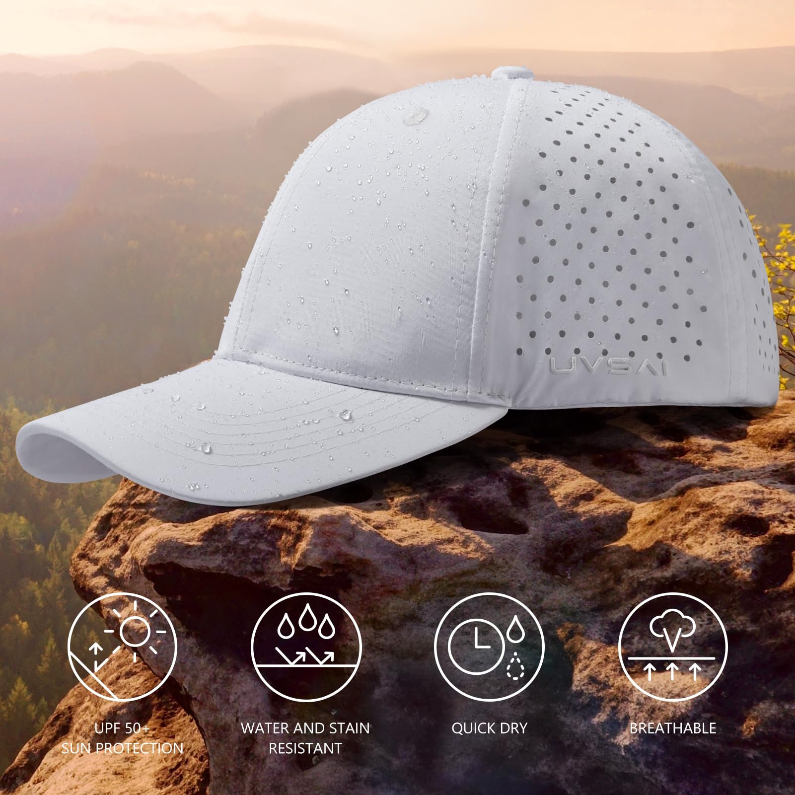 Crafted with water resistant and quick-drying properties along with the built-in soft moisture wicking sweatband to keep your head dry and comfortable