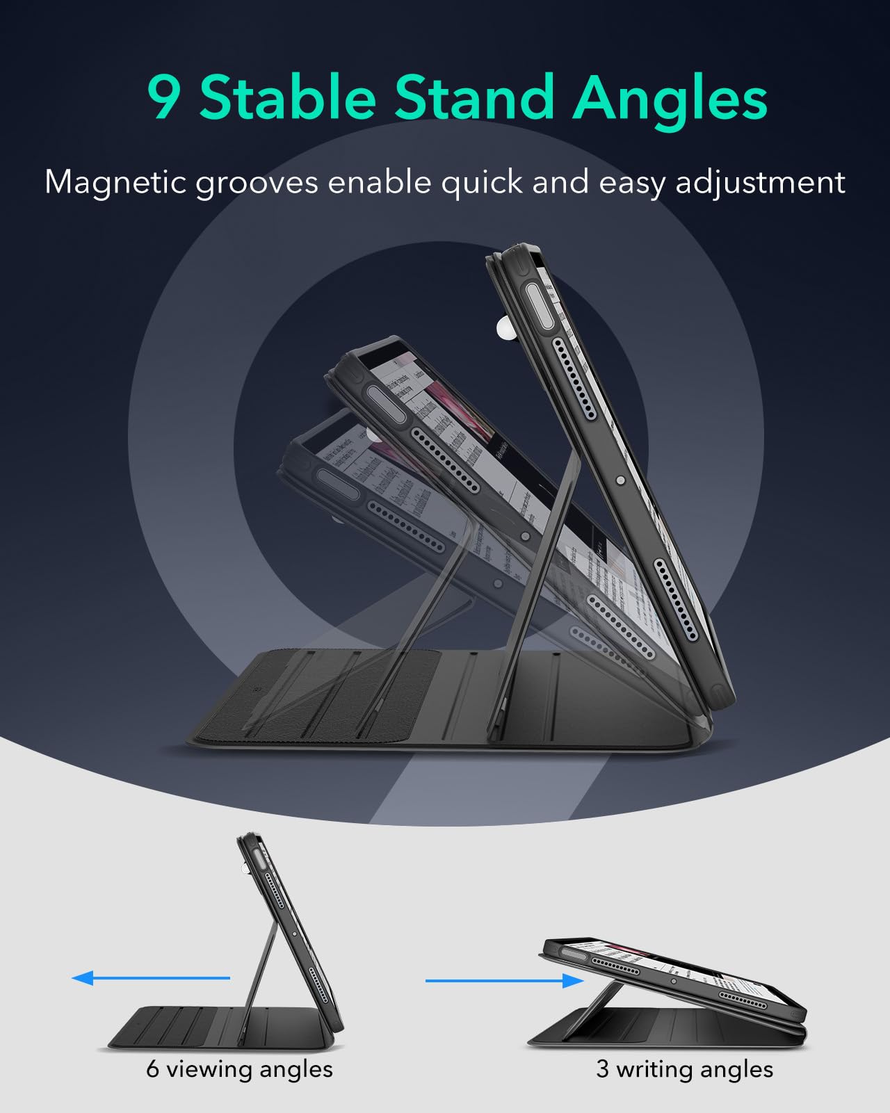 Ultra-Stable Stand: wide support brackets magnetically lock into grooves in the base to provide superior stability, even when using your iPad Air on your lap