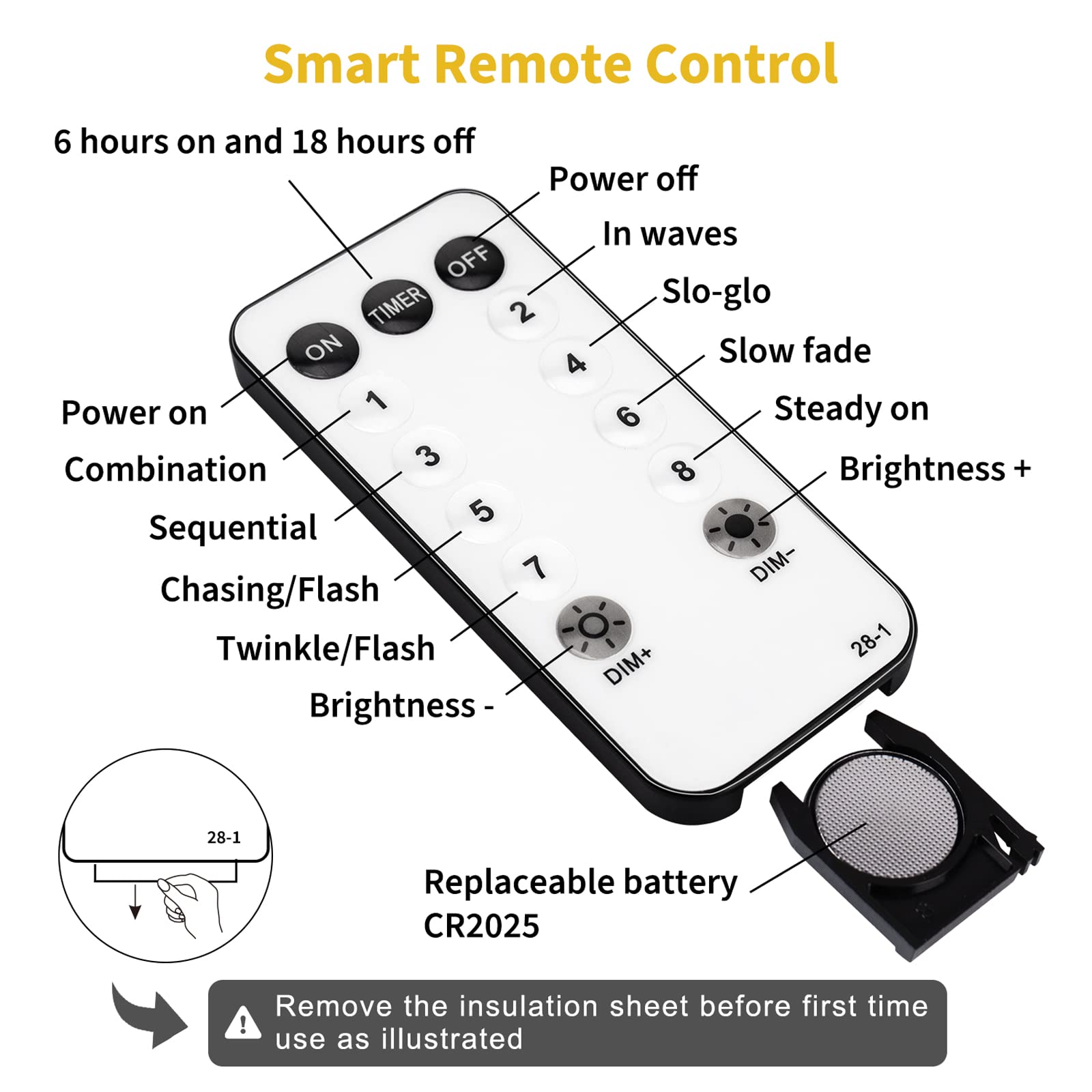 Timer & Dimmer: Use the timer function on the remote to turn on the lights for 6 hours and off for 18 hours automatically every day. Set the brightness by dimmer to adapt to special occasions like dating, wedding, anniversary or birthday party