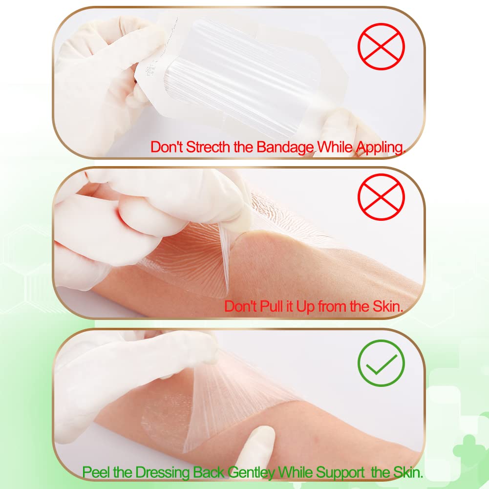 ✅To avoid the trauma, don't stretch this film bandage while applying, peel the dressing back rather than pull it up from the skin when removing dressing.