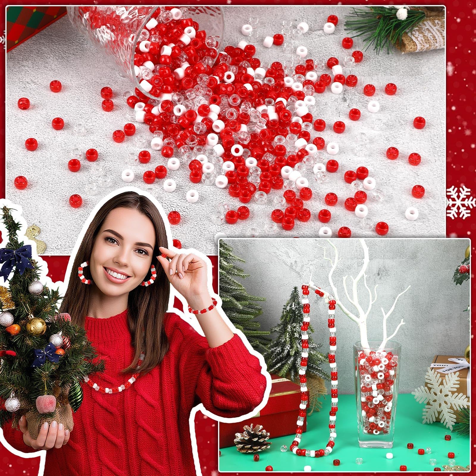Package Content: We've meticulously prepared 1200 round red and white beads in Christmas colors, available in four dreamy colors: solid red, solid white, shimmering red, and shimmering clear. Unleash your creativity and explore the world of handmade and DIY jewelry without worrying about running out of materials. This collection of red and white beads is enough to support all your Christmas decoration, gift wrapping, and creative design dreams