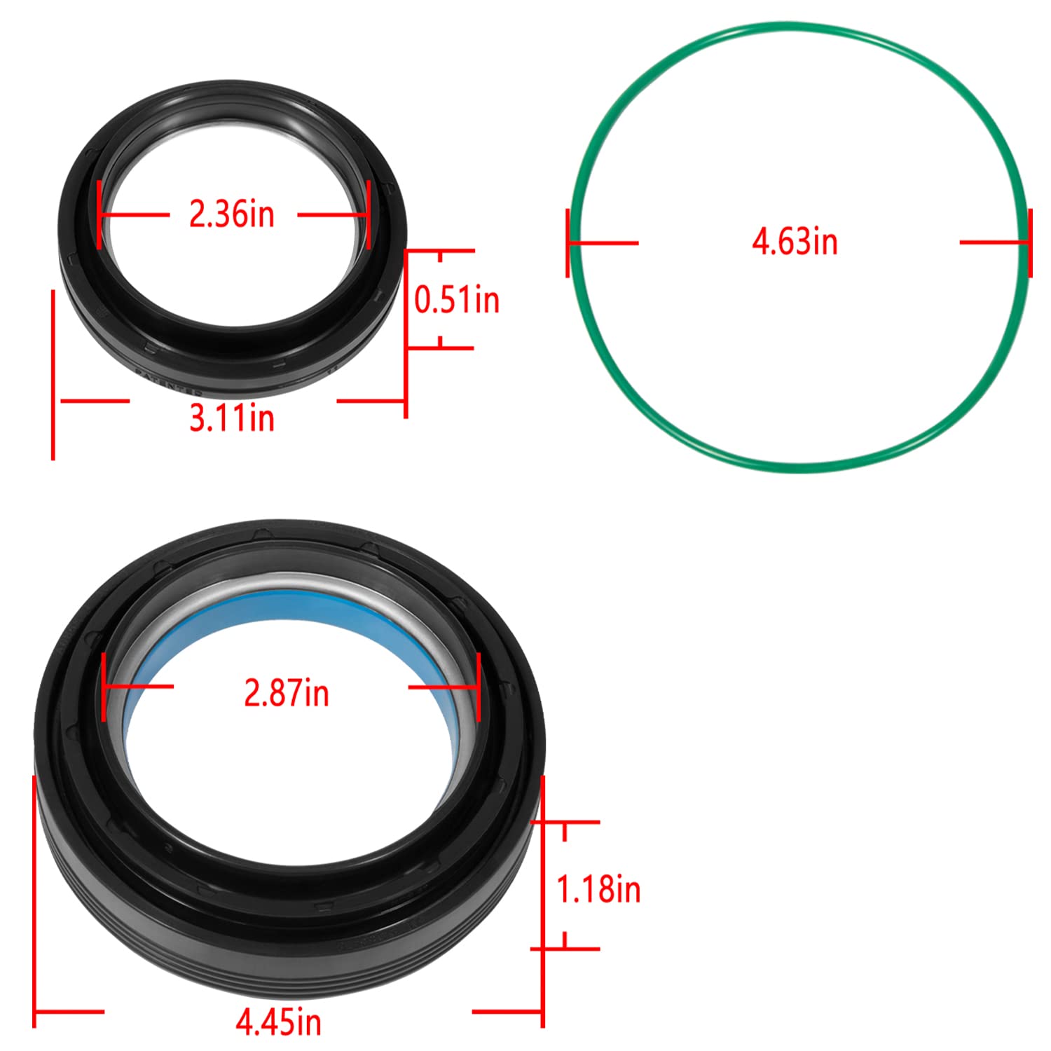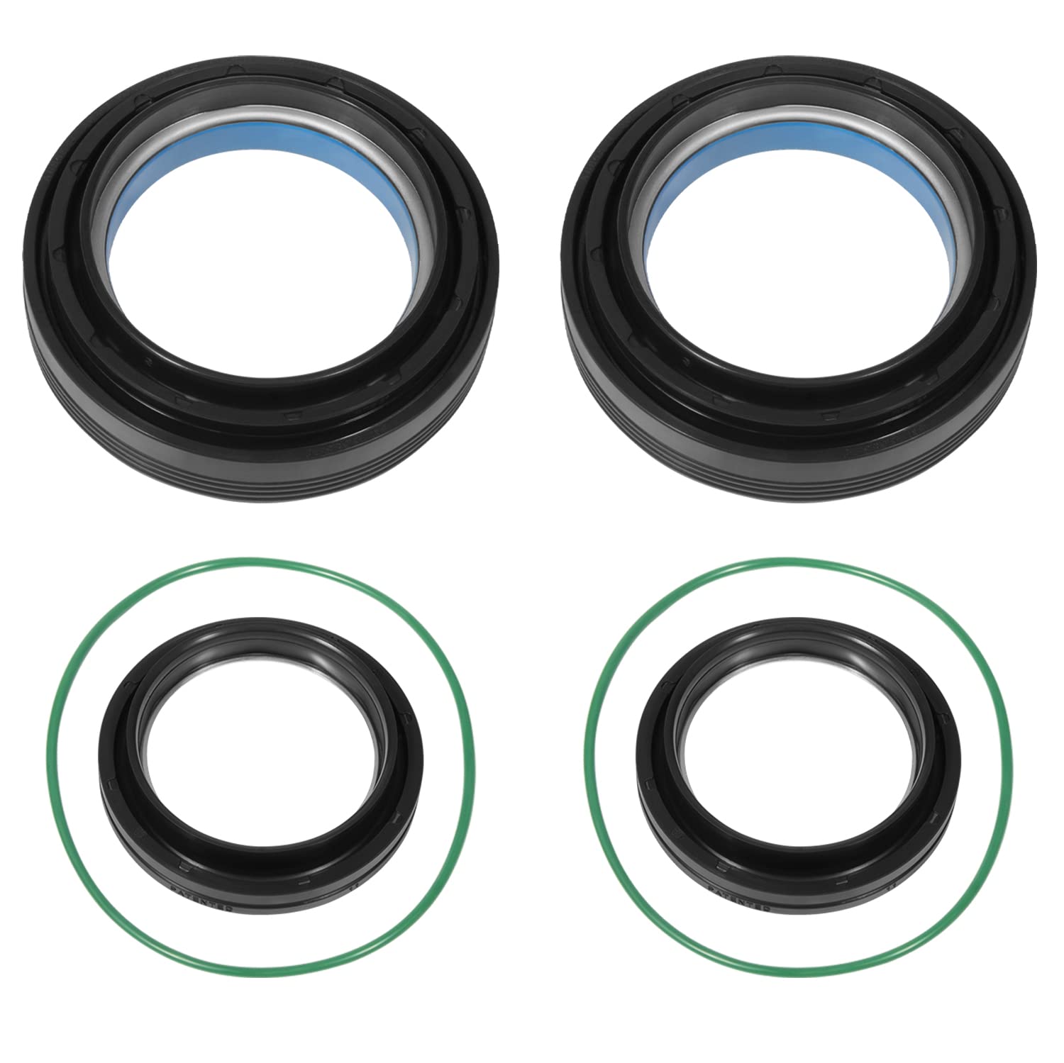 PACKAGE INCLUDE: 2 inner knuckle oil seals that fit on outer axle, 2 outer tube oil seals or dust seal that fit on inner axle shaft next to yoke, 2 vacuum seal O-rings that are for the wheel hub bearing assy.(total 6 pieces). Replace for part # 50491 50381 41784-2.