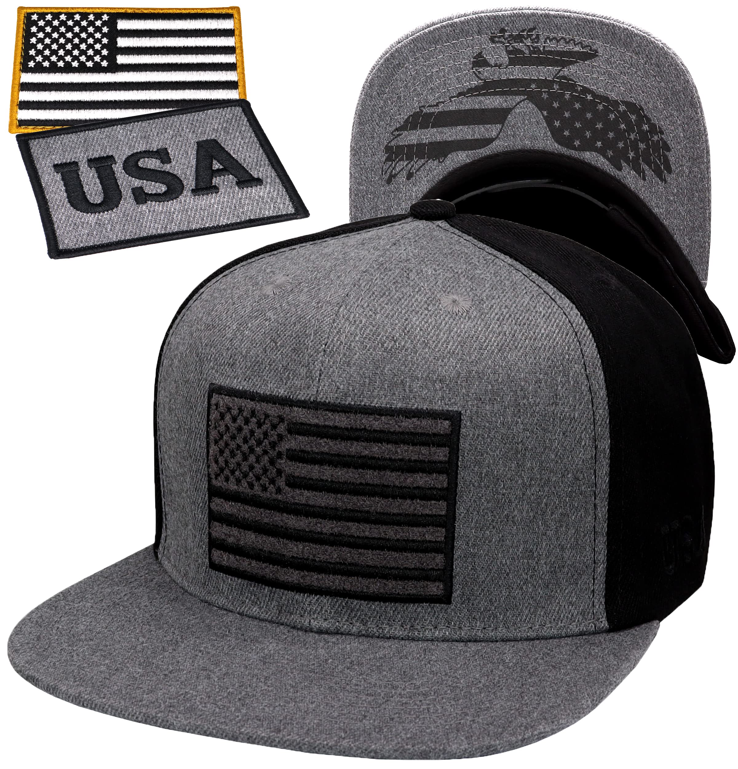 4TH OF JULY FLAT BILL SNAPBACK HAT - Our American Flag Snapback Hat is made with premium leather engraving technology to create a unique style and ensure long-lasting logo graphics to prevent warping. MixYoke Men's Patriotic Snapback Caps are sure to help you stand out in the crowd!