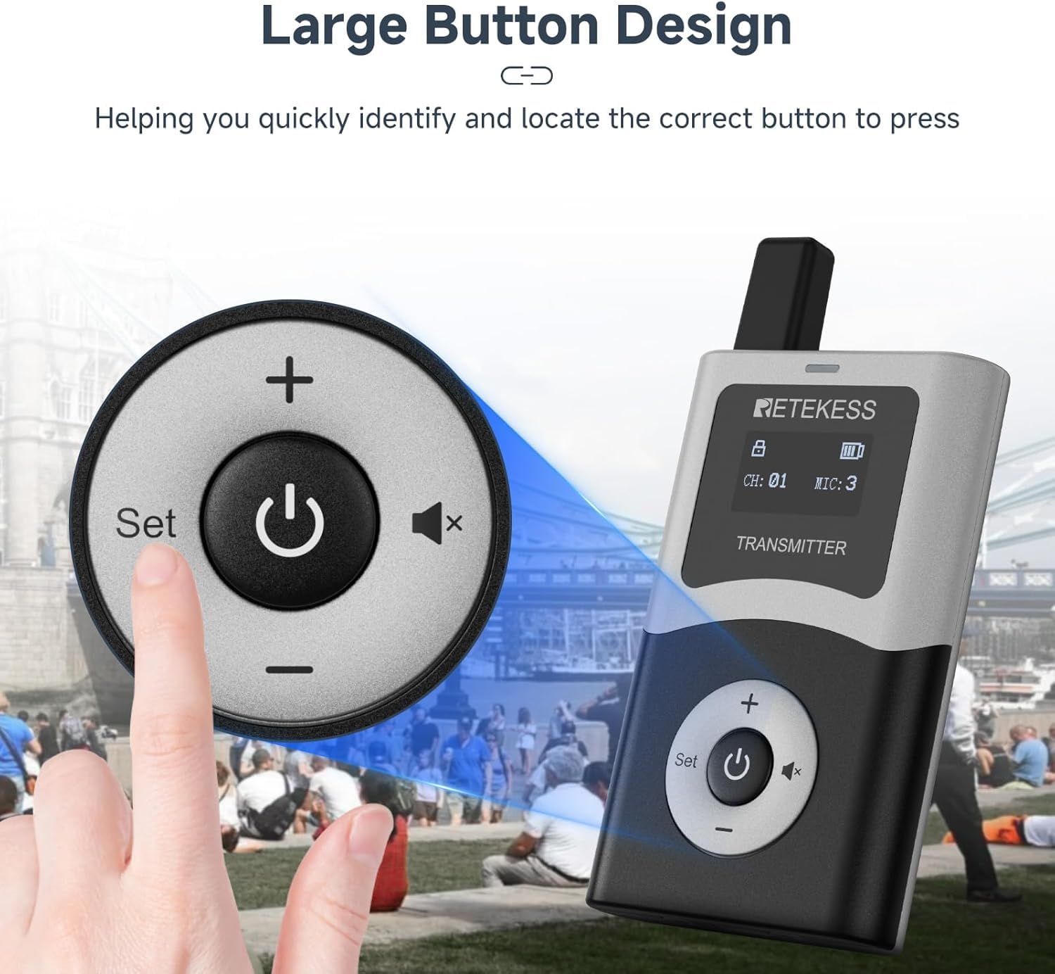 One-Button Operation; Translation Equipment for Church; elevate your travel adventures with U band tour guide system; that boasts one-touch function; from one-touch mute to one-touch power-off and one-touch pairing; say goodbye to complicated controls