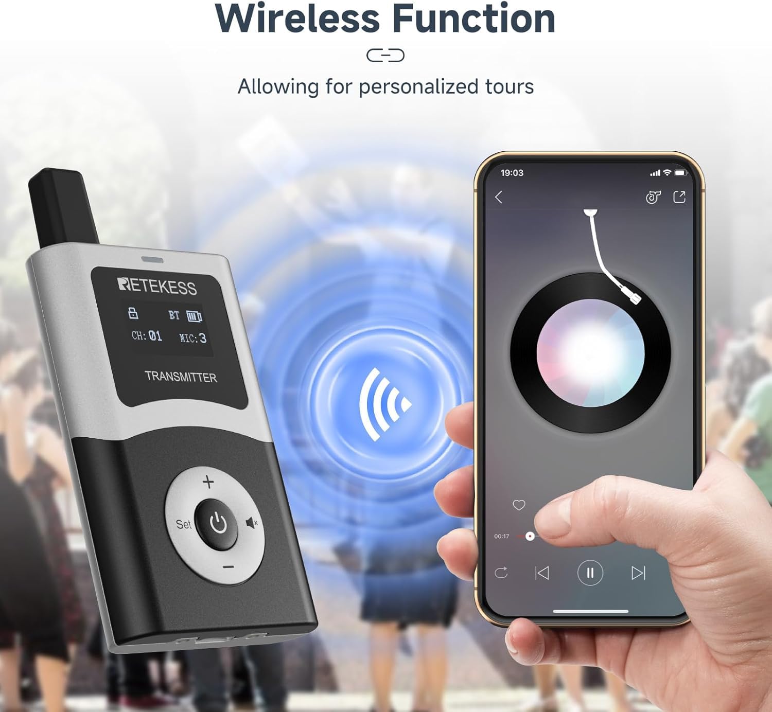 Wireless Connected; Wireless tour guide system boasts wireless connectivity for audio input; allows for seamless integration with your smartphone; tablet; or other wireless-enabled devices
