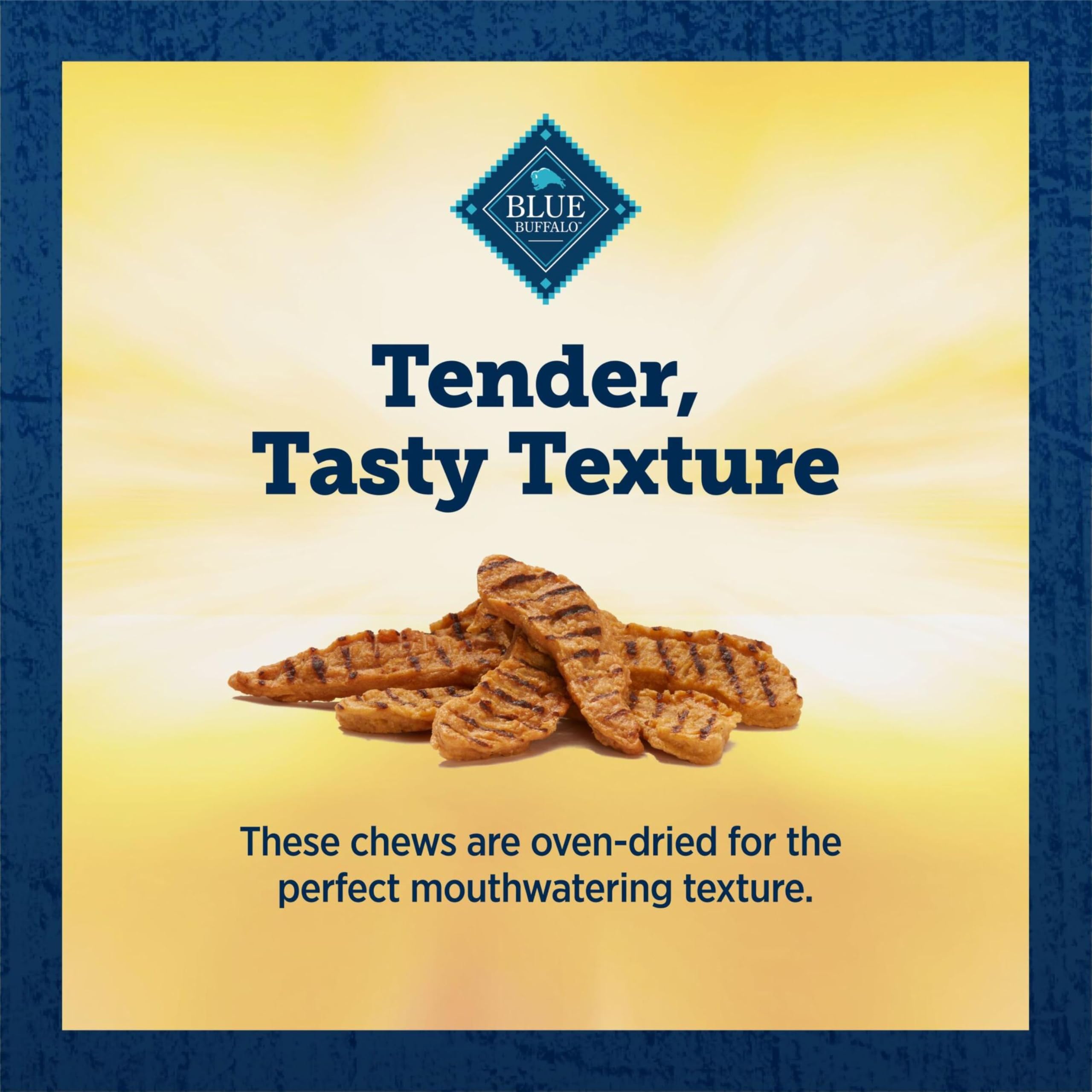 Give your dog the taste of real chicken with BLUE True Chews Premium Grillers Natural Dog Treats. Made with real USA chicken as the first ingredient, these tender dog treats are easy to tear into smaller pieces, so they're great for dogs of all breed sizes and ages. And like all Blue Buffalo dog treats, these treats for dogs never contain chicken (or poultry) by-product meals, corn, wheat, soy, artificial flavors, or preservatives. Watch their tail wag when you reward them with BLUE True Chews Premium Grillers Chicken Dog Treats.