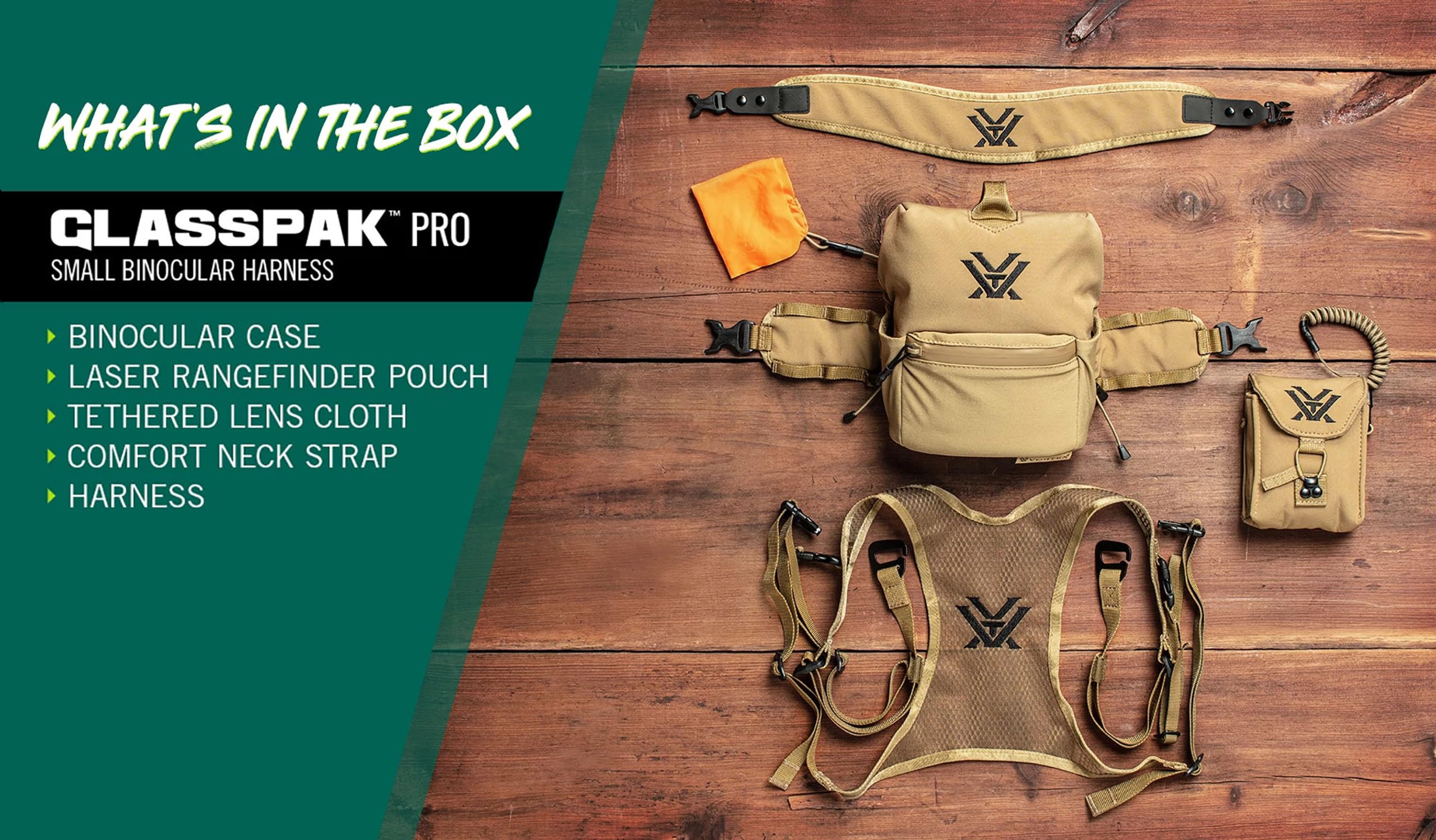 Hunting deep in uncharted territory calls for binocular protection that’s more than just secure; with a DWR treated exterior, the Pro is weather-resistant on the outside. The rear pocket includes a tethered lens cloth for easy lens cleaning.