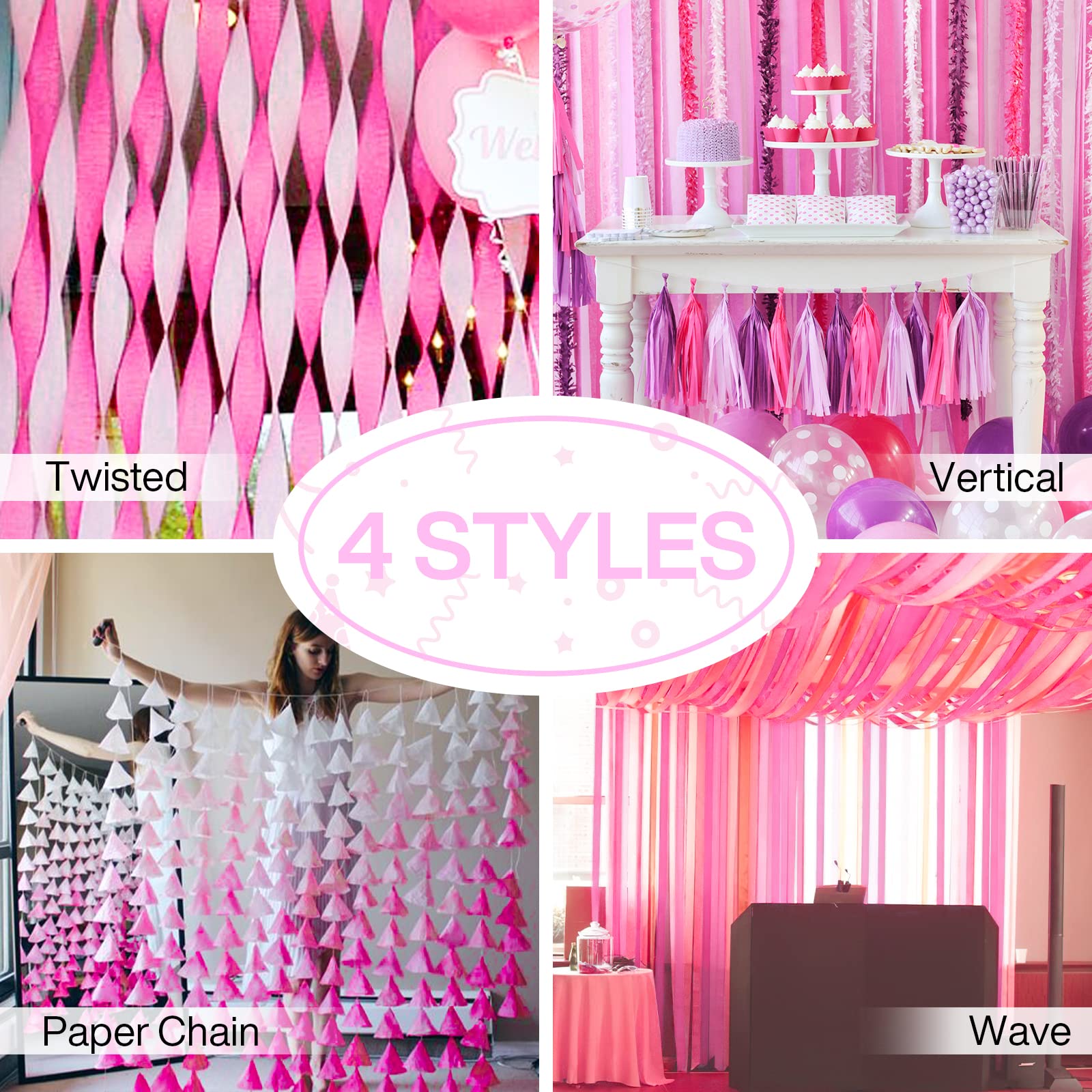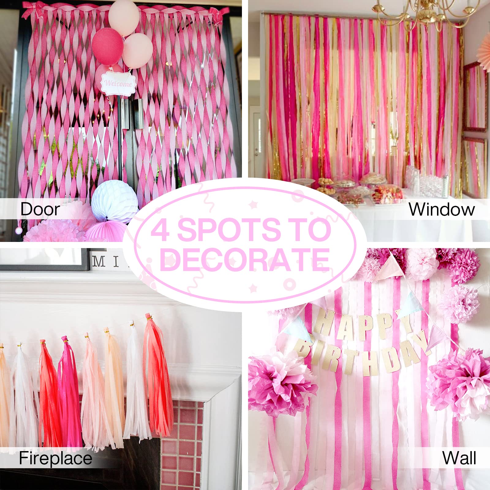 Each roll 82 feet long 1.8 inch wide: package includes light pink crepe paper (4 rolls)