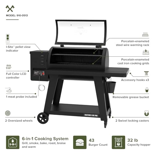 Oakford 1125 Pro Pellet Gril with 1069 SQ In Cooking Area, Cast Iron Grates, I-Site View Indicator, Heavy Duty Pellet Smoker Grill with Bluetooth Connectivity - 910-0513