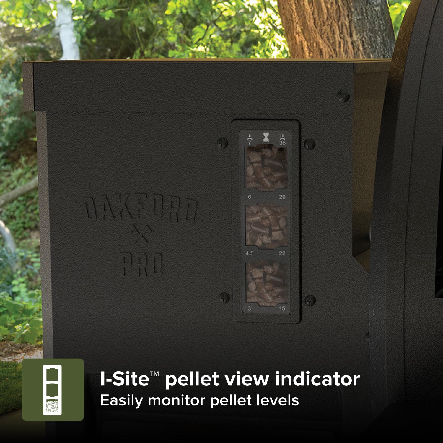 【EASY PELLET MONITORING】 The I-Site Pellet View Indicator provides a clear view of your pellet levels, allowing you to track fuel with ease. Never worry about running out mid-grill—stay prepared and keep your cooking sessions uninterrupted