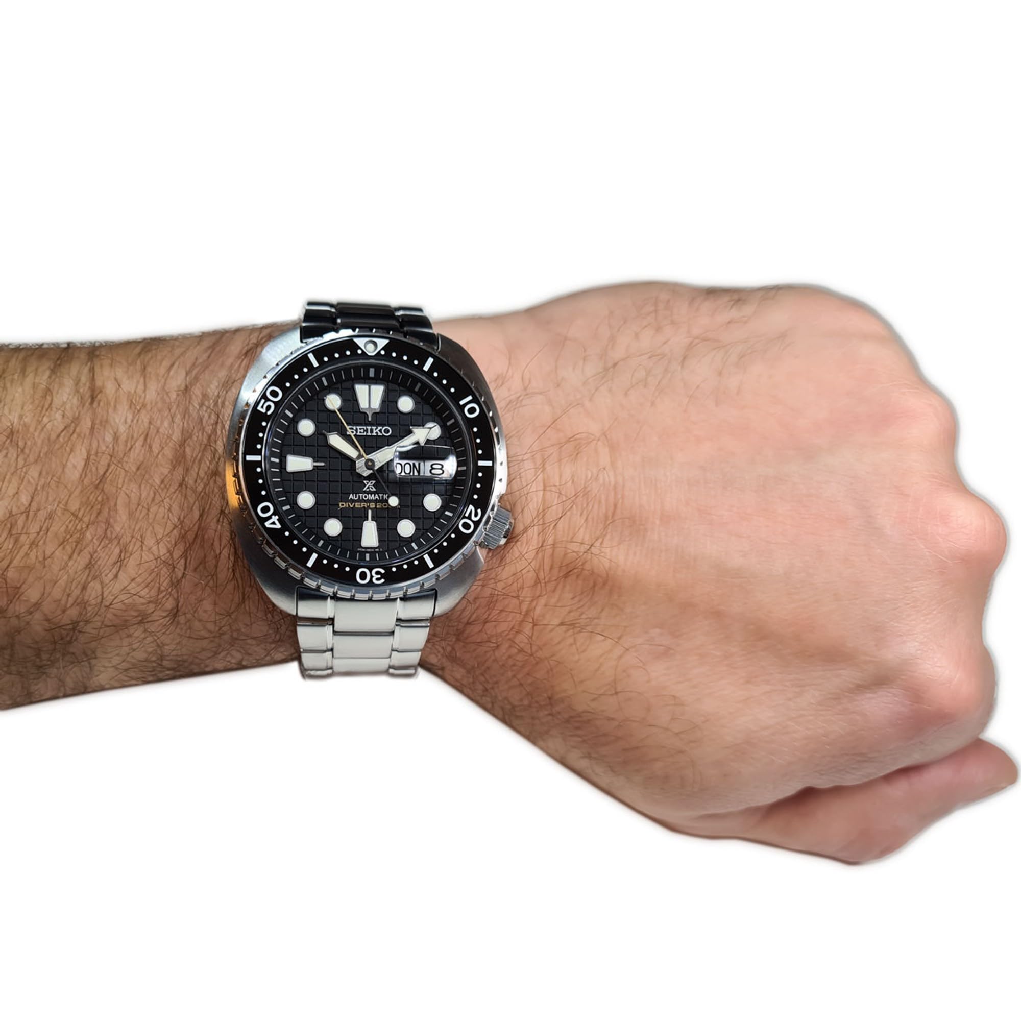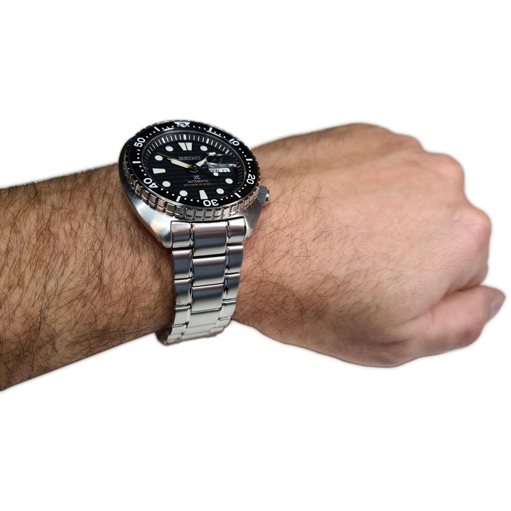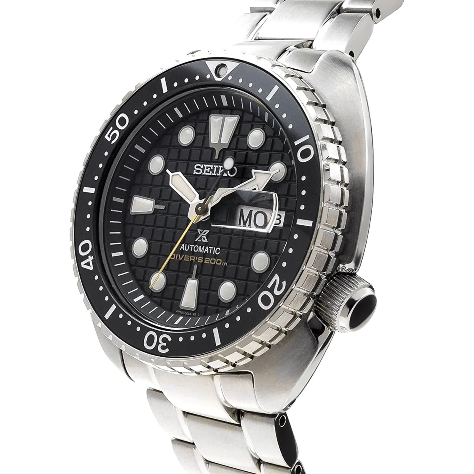Description Features: Stainless Steel Case Stainless Steel Bracelet Automatic Movement Caliber: 4R36 24 Jewels Sapphire Crystal Black Dial Analog Display Luminous Hands And Markers Day And Date Display Unidirectional Rotating Bezel Screw Down Crown Screwed Case Back Deployment Clasp 200m Water Resistance Approximate Case Diameter: 45mm Approximate Case Thickness: 13mm Approximate Lug Width: 22mm