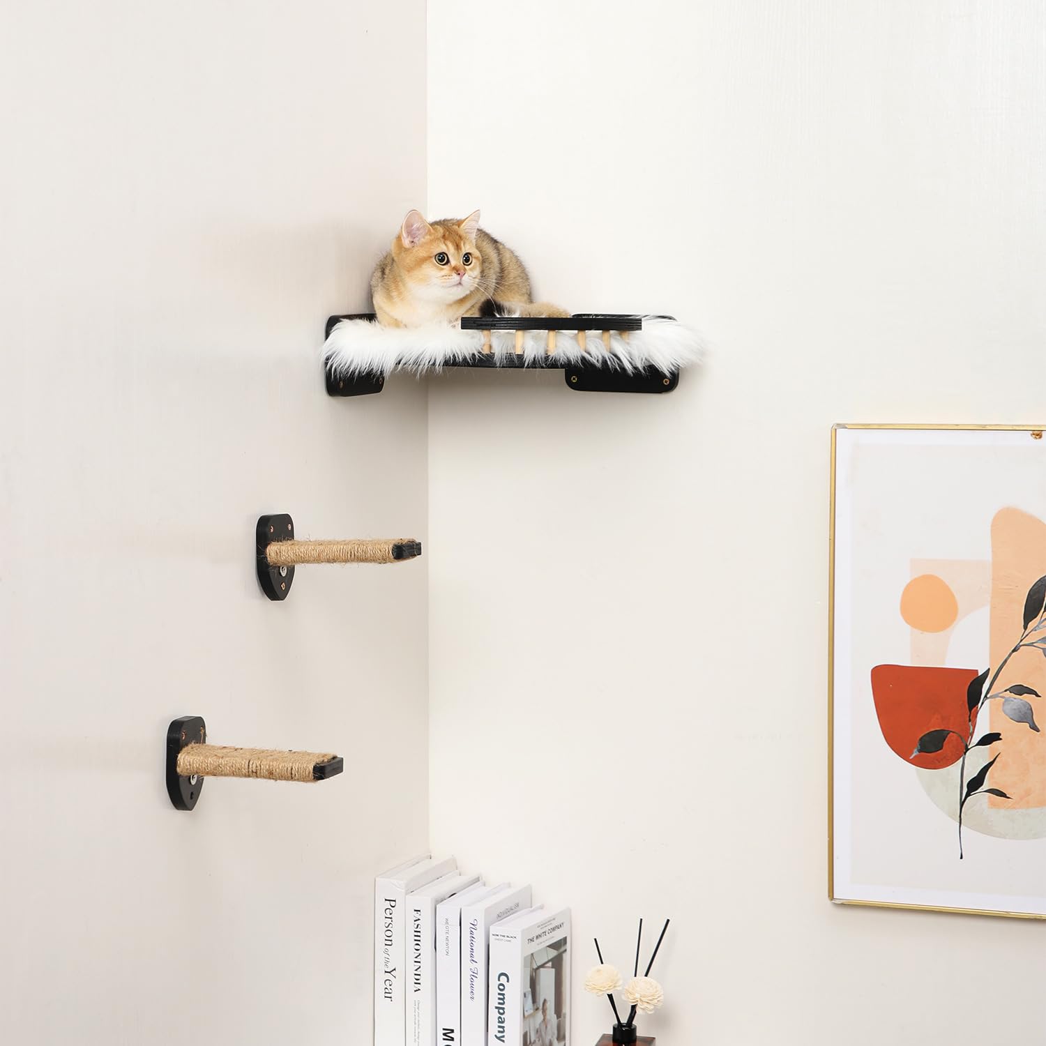 【Easy Assembly and Wall Installation】Ladders are pre-assembled and with pre-drilled holes on the steps, it's much easier to install the cat steps on the wall without measuring. The cat climber comes with step-by-step instructions for your convenience. You only need to nail it to the wall with tools, and then the sturdy cat climbing shelf is ready for your cats to play.