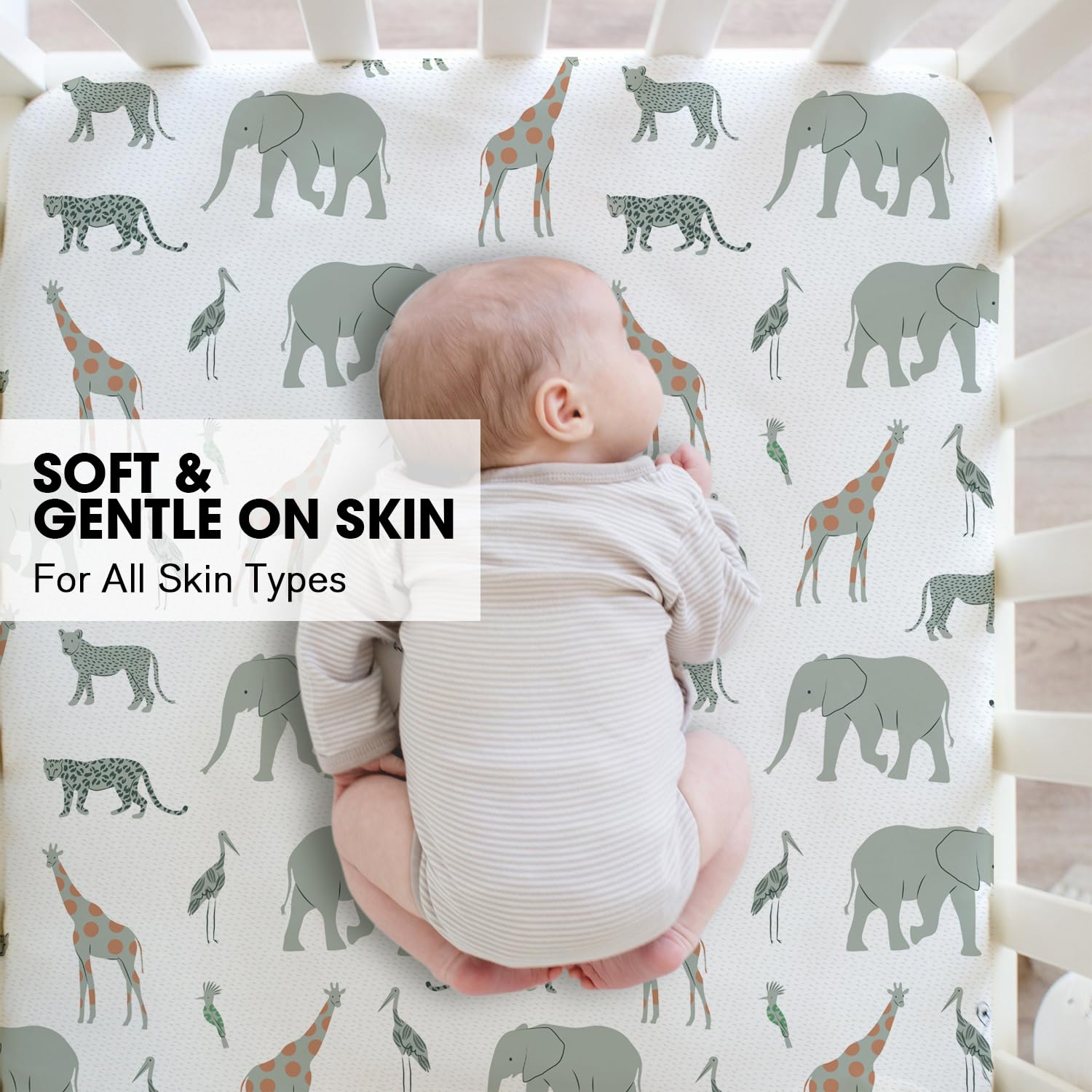 PREMIUM QUALITY - The baby crib sheets is made of ultra soft microfiber, luxuriously skin-friendly, cozy fabric touch, does not irritate baby's delicate skin. Your little one will feel comfy and free while they're playing or sleeping