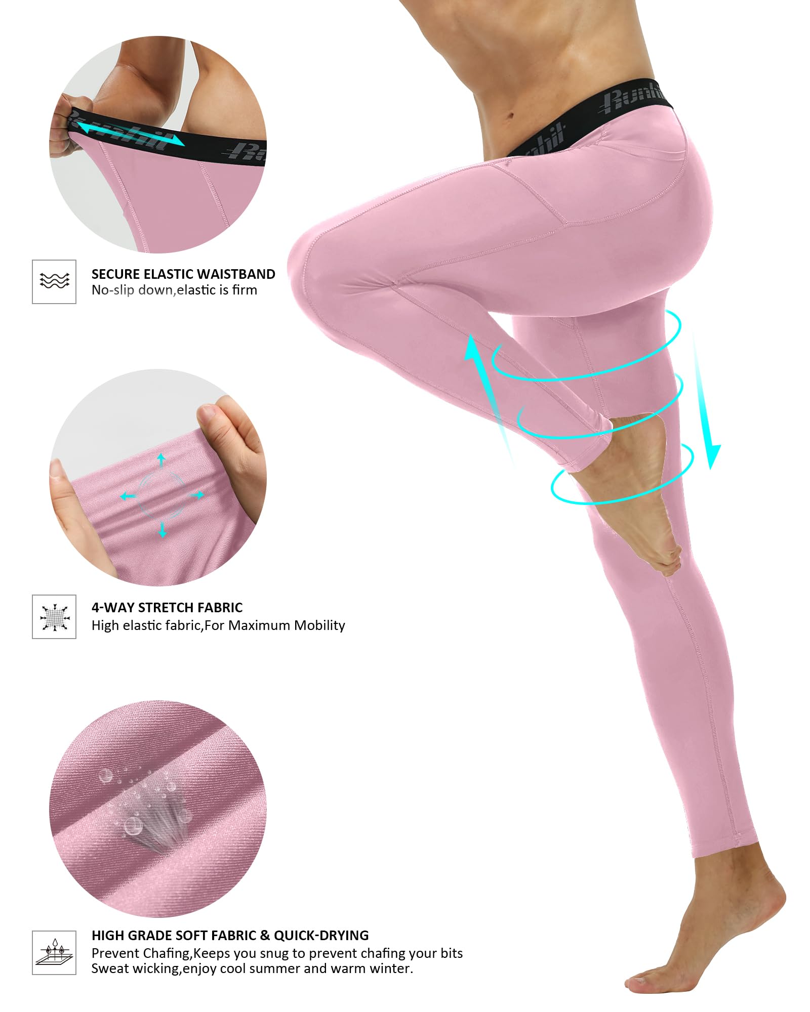 【base layer Protection】Engineered for all weather conditions, our mens compression leggings provide softness without bulk. Ideal for winter running, cycling, or outdoor workouts, they can retains heat while wicking away moisture to keep you dry and comfortable. These mens leggings also include convenient pockets for storing essentials during your outdoor adventures