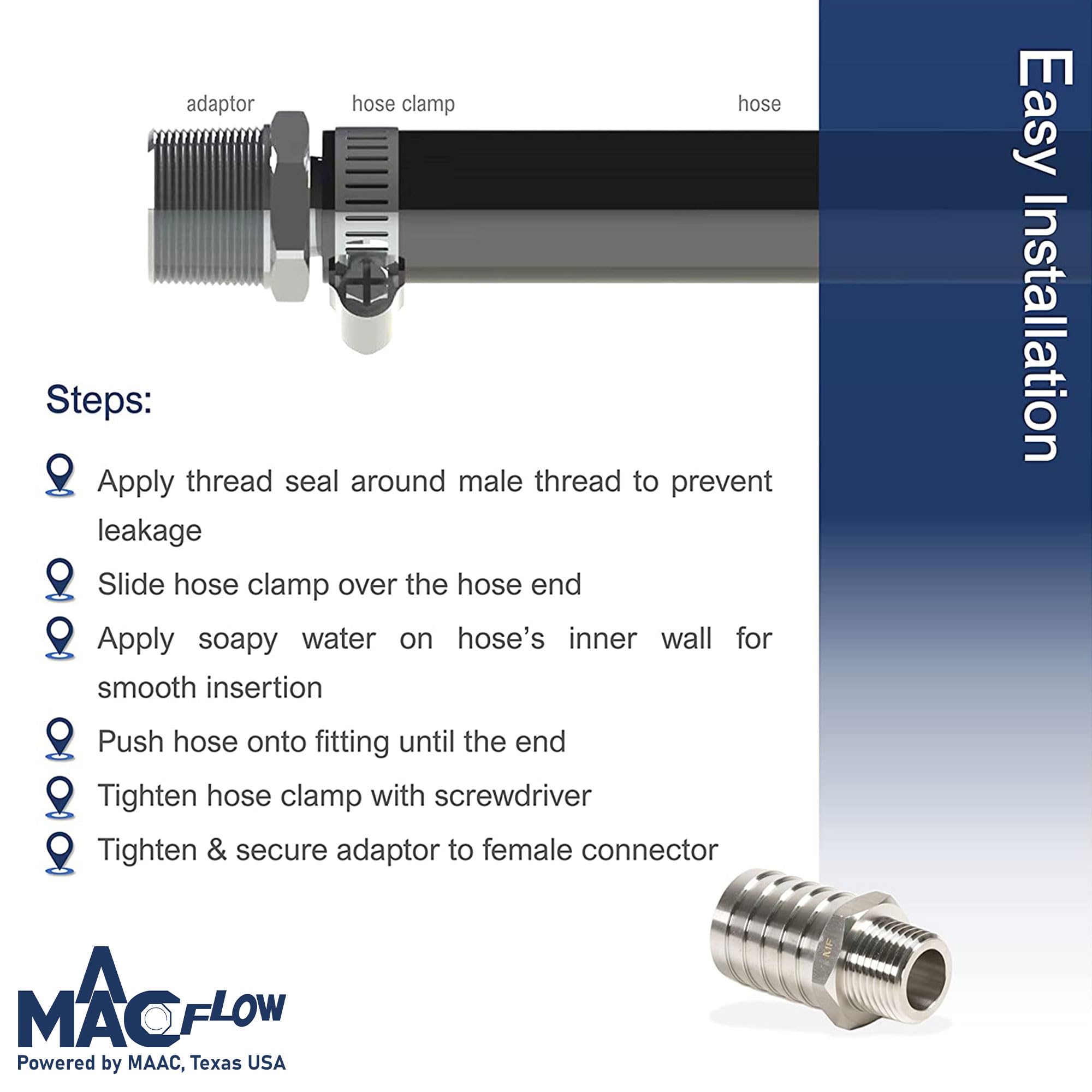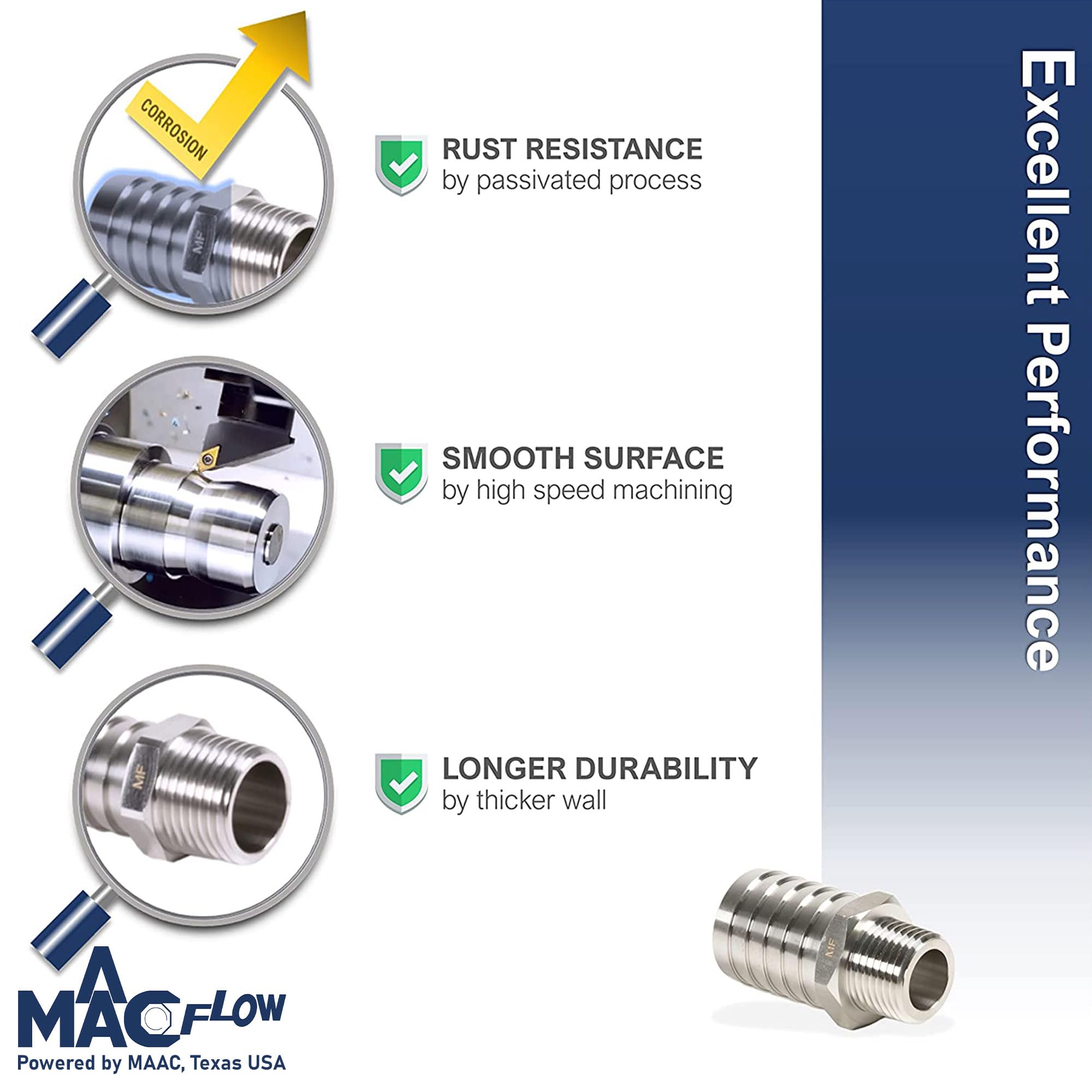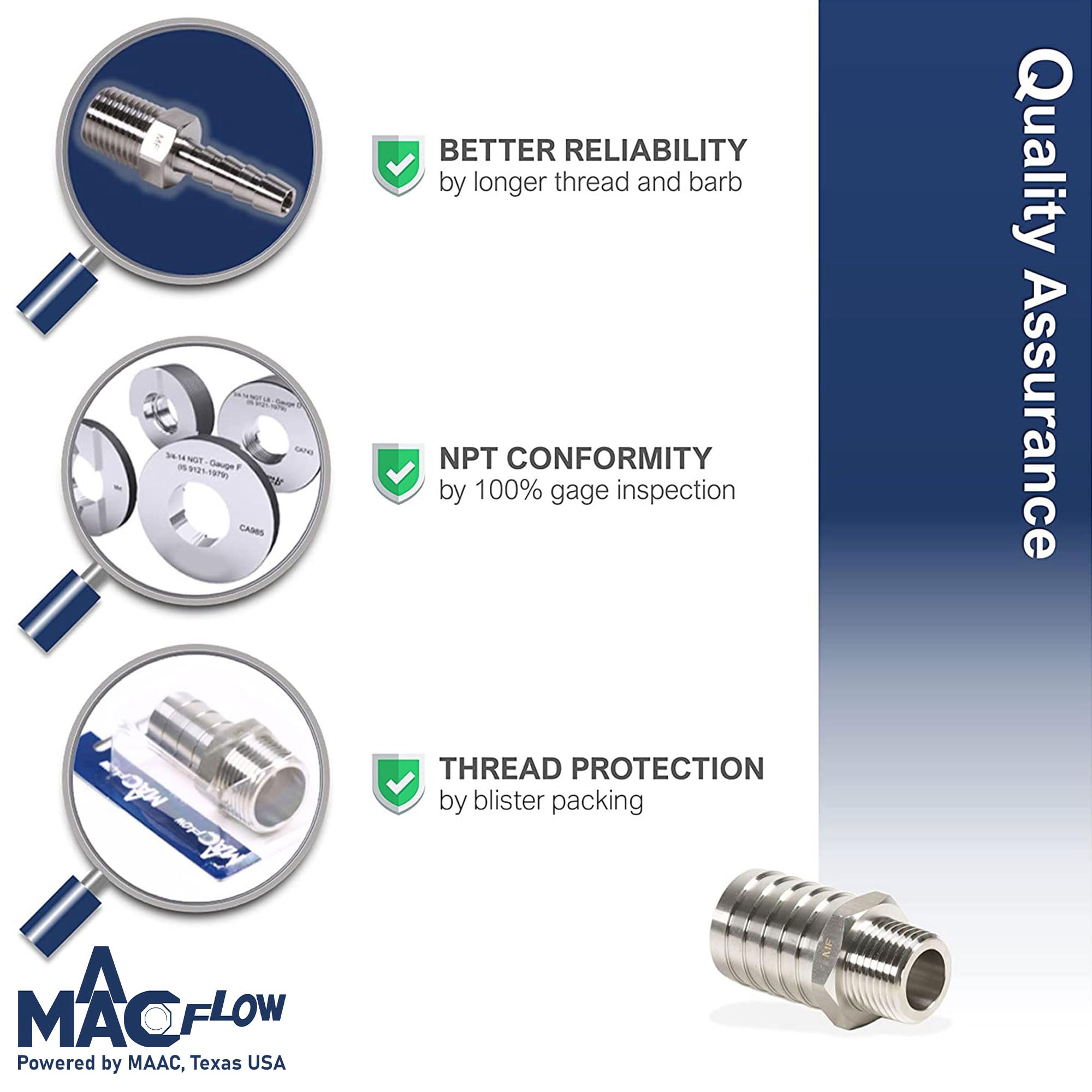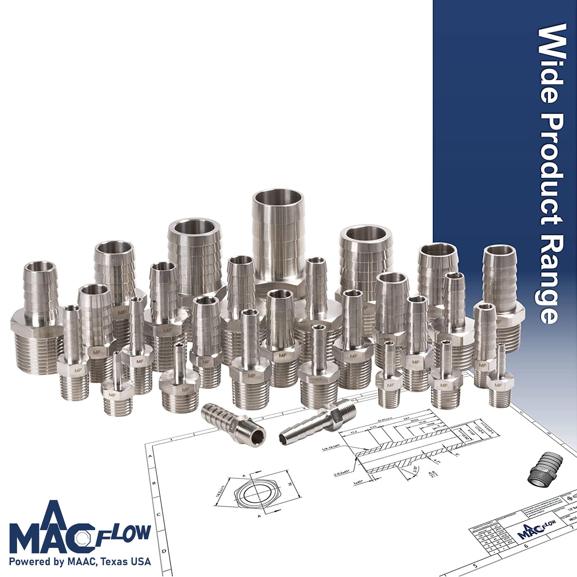 Design for thicker wall, longer on thread and barb, to increase fitting's durability and relliability