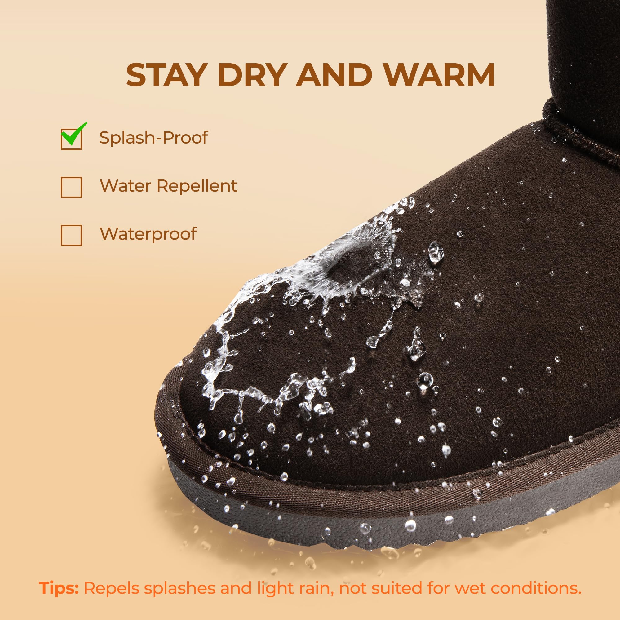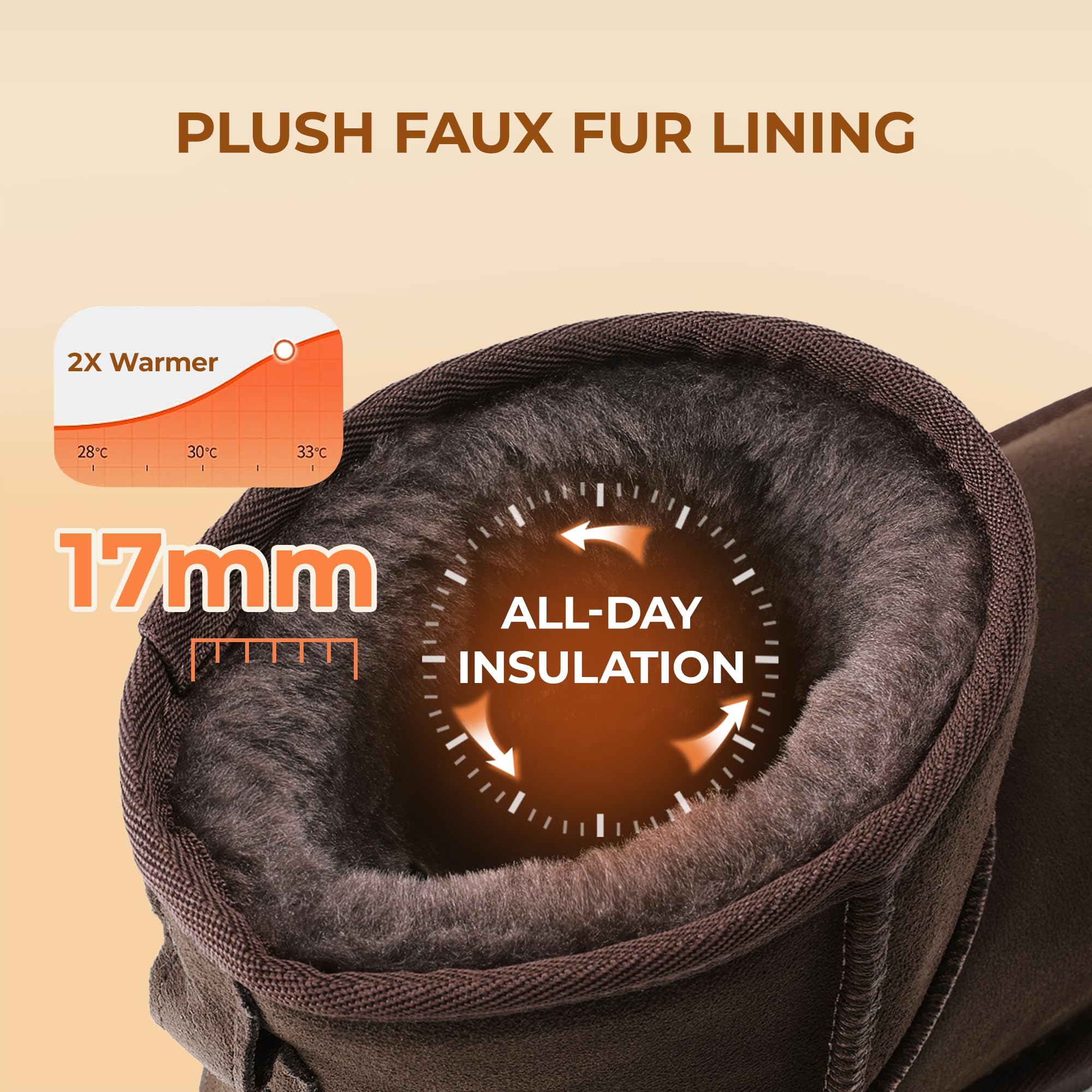 Genuine Leather Upper: These womens snow boots feature a 100 percent premium genuine suede leather upper, offering a delicate and skin-friendly touch that showcases luxury and durability.