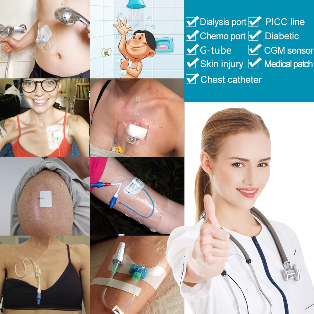 【Keep Wound Dry While Bathing】 Dignity was maintained even with wound site. Dr. Approved, Hospital Used! The chest port shower cover seal is waterproof and you will have no issues with ANY water getting inside the shield. This large waterproof bandage moisture barrier can be used daily for shower protection to cover dialysis port, chest catheter, central line, chemo port, feeding tube, peritoneal dialysis, G-tube, colostomy wounds site, PICC line, any patient that has medical tubing.