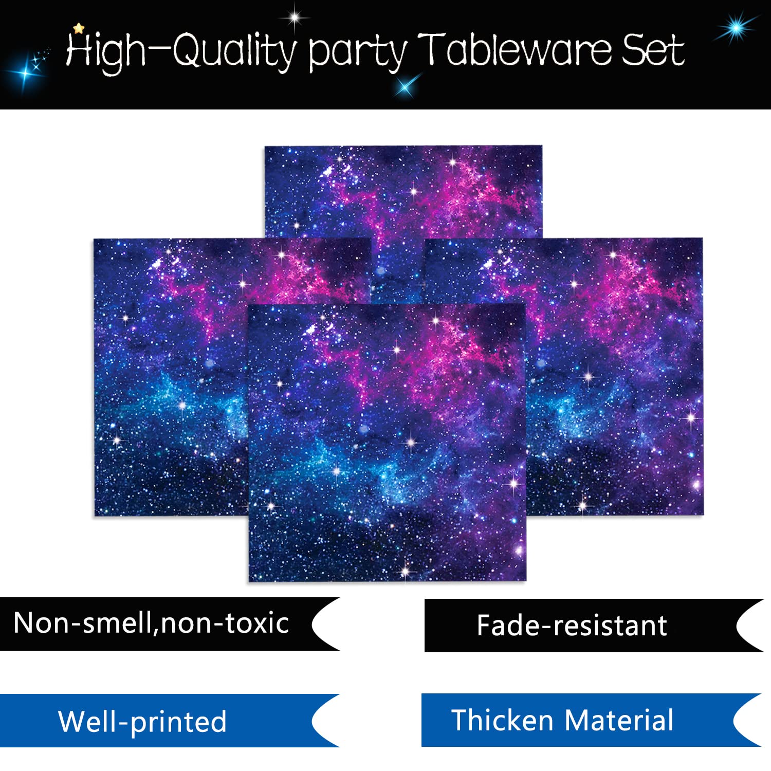 【Delicate design】This galaxy space theme party decorations is designed with elements such as purple-blue outer space nebula and shooting stars, and the high-definition printing technology makes the color of the galaxy nebula more gorgeous; this space star theme party tableware will be a great choice to decorate the table! This will add beautiful color to your party and create unforgettable memories for your kids.