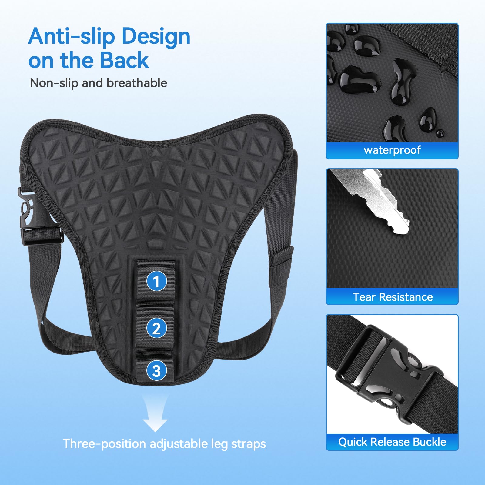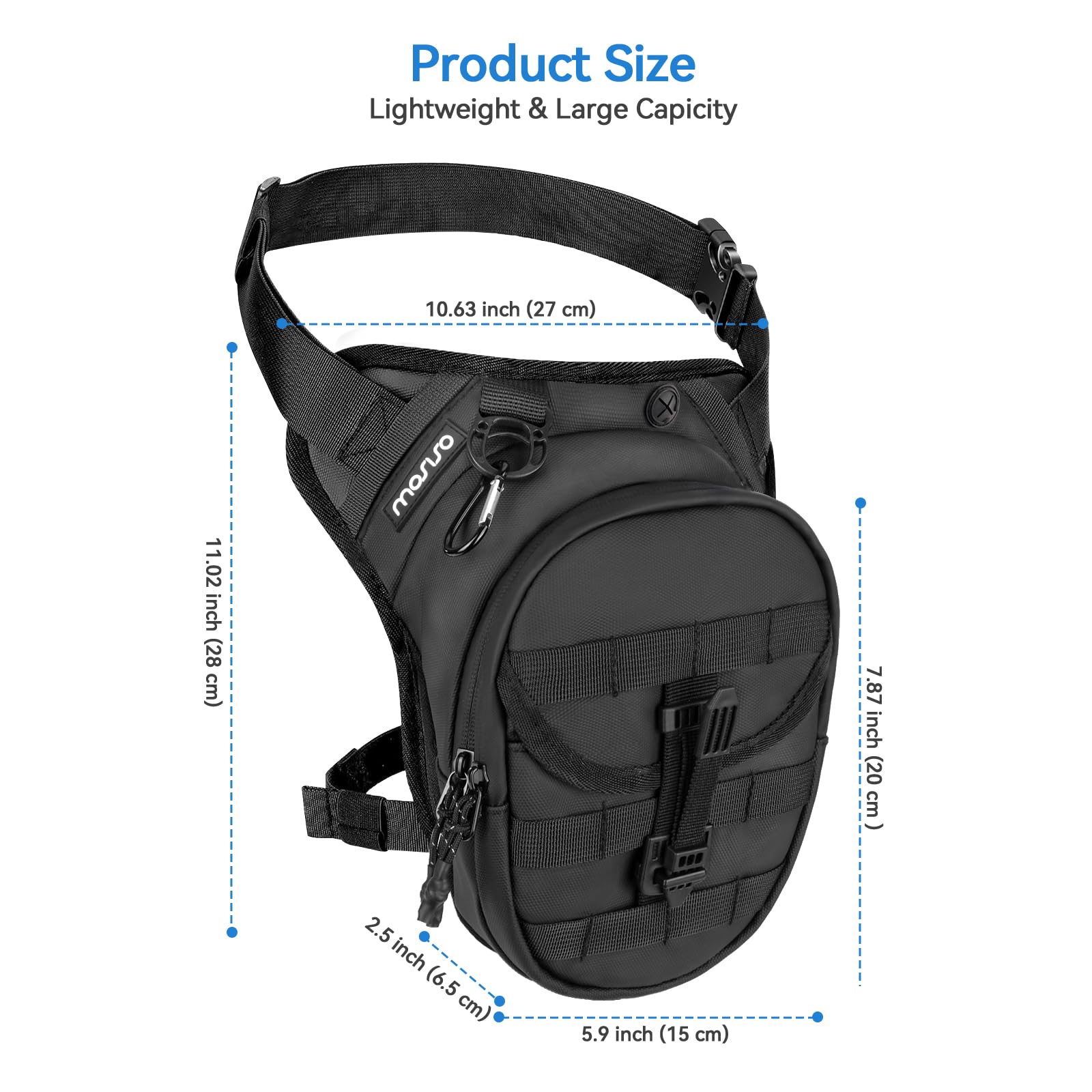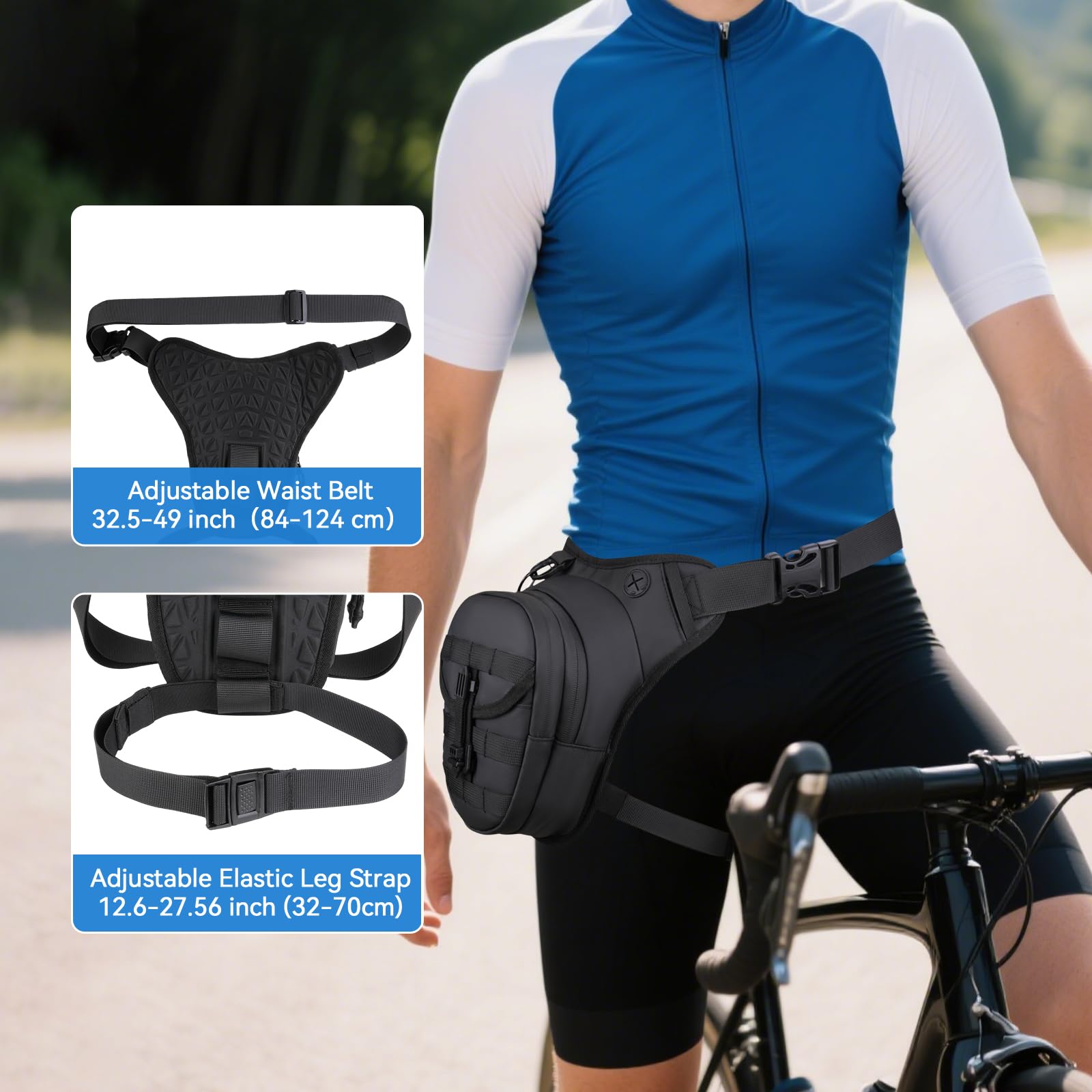 Designed for all day riding comfort, this motorcycle leg bag features fully adjustable waist and leg straps, including enhanced leg strap for dynamic flexibility. The drop leg panel effortlessly adjusts from 32.5 inch to 49 inch (84-124cm), while the leg strap adapts from 12 inch to 27 inch (32-70cm). With three secure positioning options, it ensures a snug, personalized fit, whether you're a lean racer or a muscular cruiser rider.